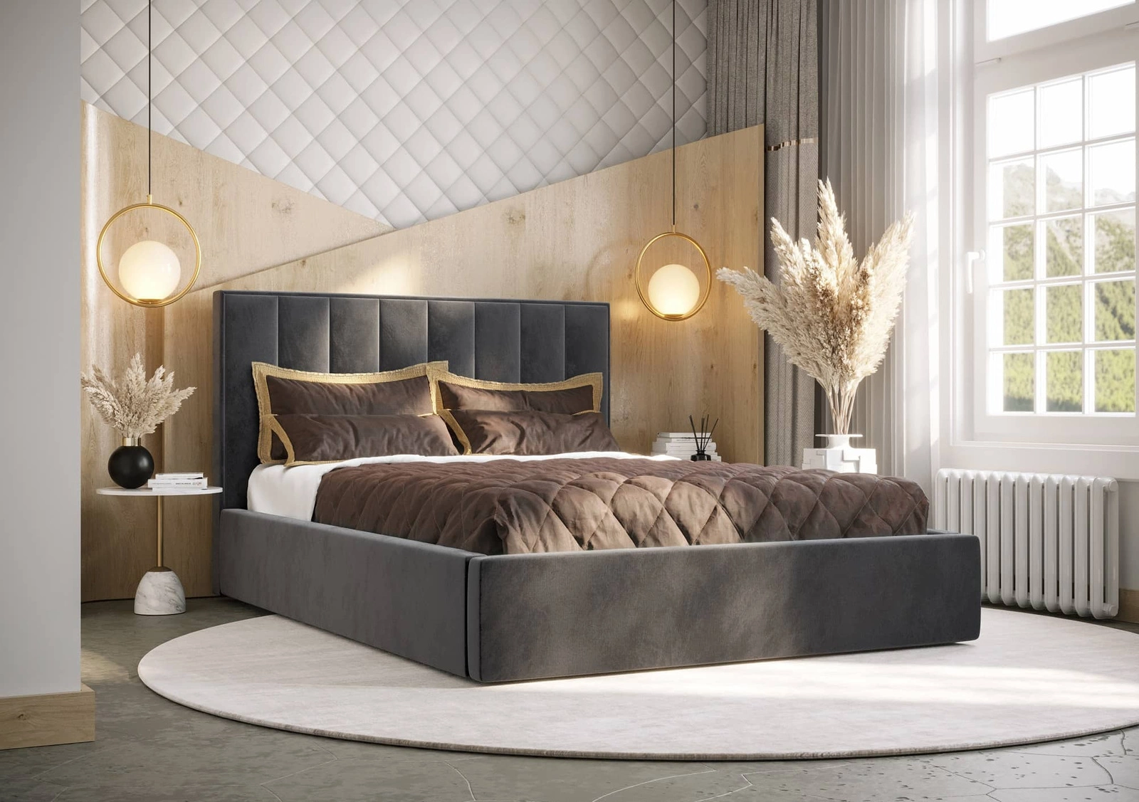 Szczegóły łóżka tapicerowanego Rinus: