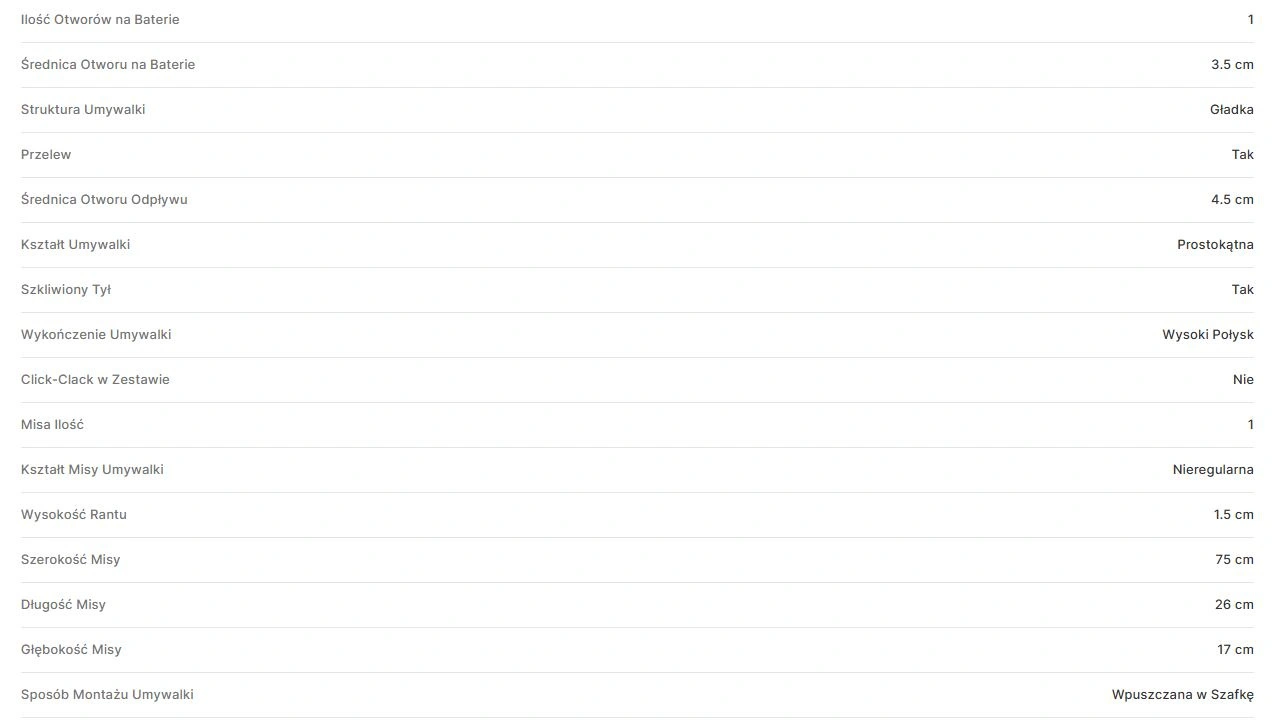 W zestawie z umywalką nie ma korka, syfonu i baterii.