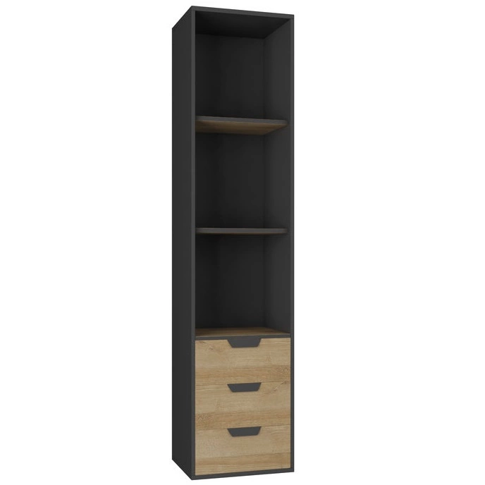 Regał wąski z szufladami Nano w kolorze grafit / dąb riviera to przepis na nowoczesne oraz funkcjonalne wnętrze w pokoju nastolatka oraz biura.