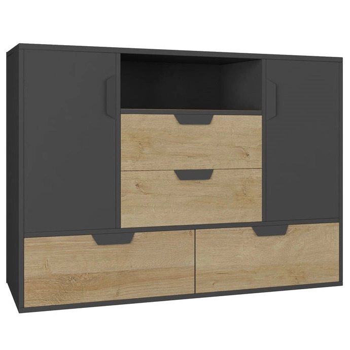 Komoda z szufladami Nano 120 cm grafit / dąb riviera bezproblemowe korzystanie i trwałość stylowy oraz funkcjonalny dodatek do gabinetu i pokoju nastolatka