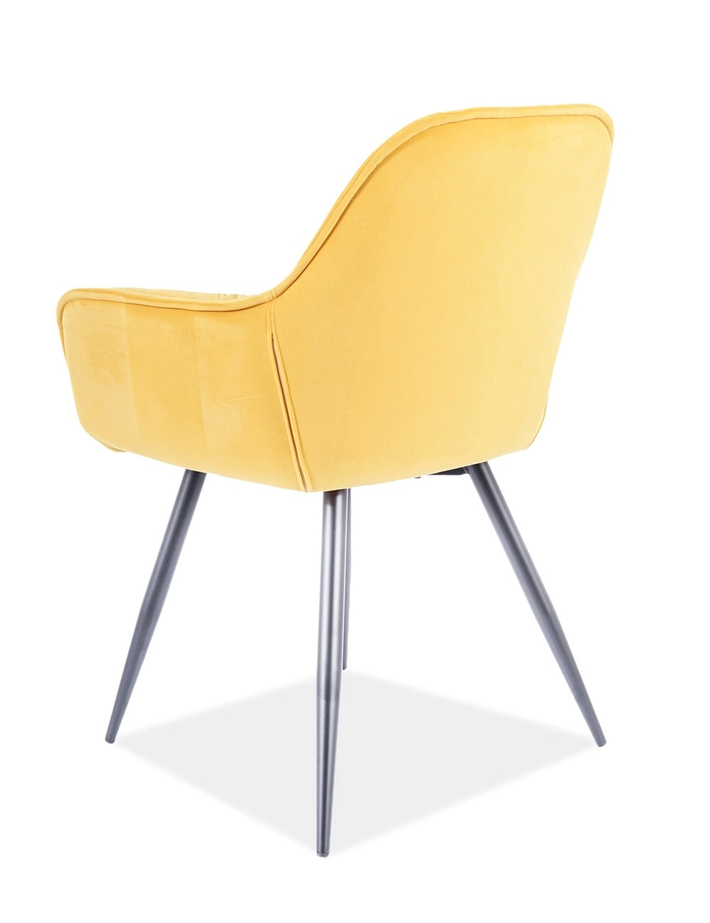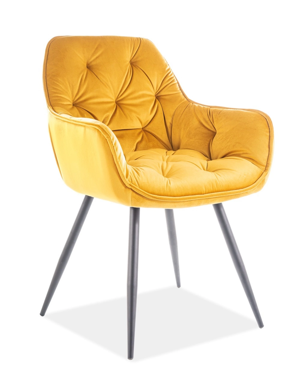 - Krzesło tapicerowane Cherry w kolorze żółtym to przepis na funkcjonalne wnętrze w Twoim domu! Nowoczesne krzesło ma metalowe, czarne nogi w kształcie stożka. Dla zwiększenia komfortu krzesło posiada wygodne oparcie oraz miękkie podłokietniki.