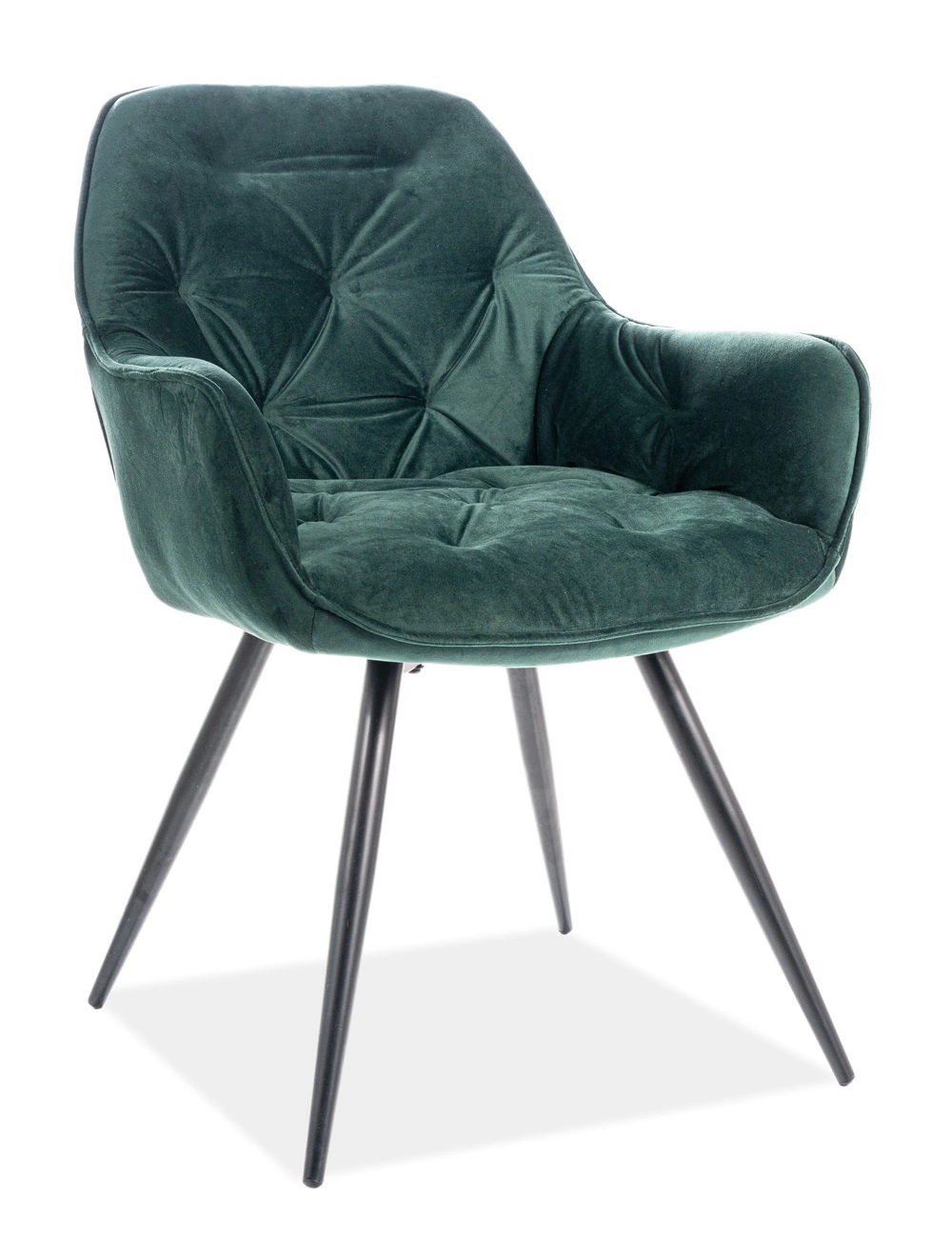 • Krzesło tapicerowane Cherry w kolorze zielonym to przepis na funkcjonalne wnętrze w Twoim domu! Nowoczesne krzesło ma metalowe, czarne nogi w kształcie stożka. Dla zwiększenia komfortu krzesło posiada wygodne oparcie oraz miękkie podłokietniki.