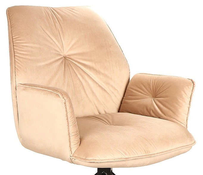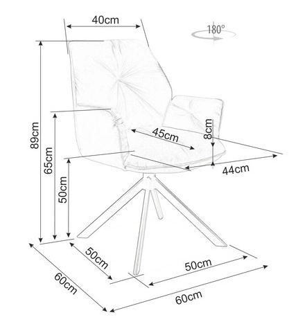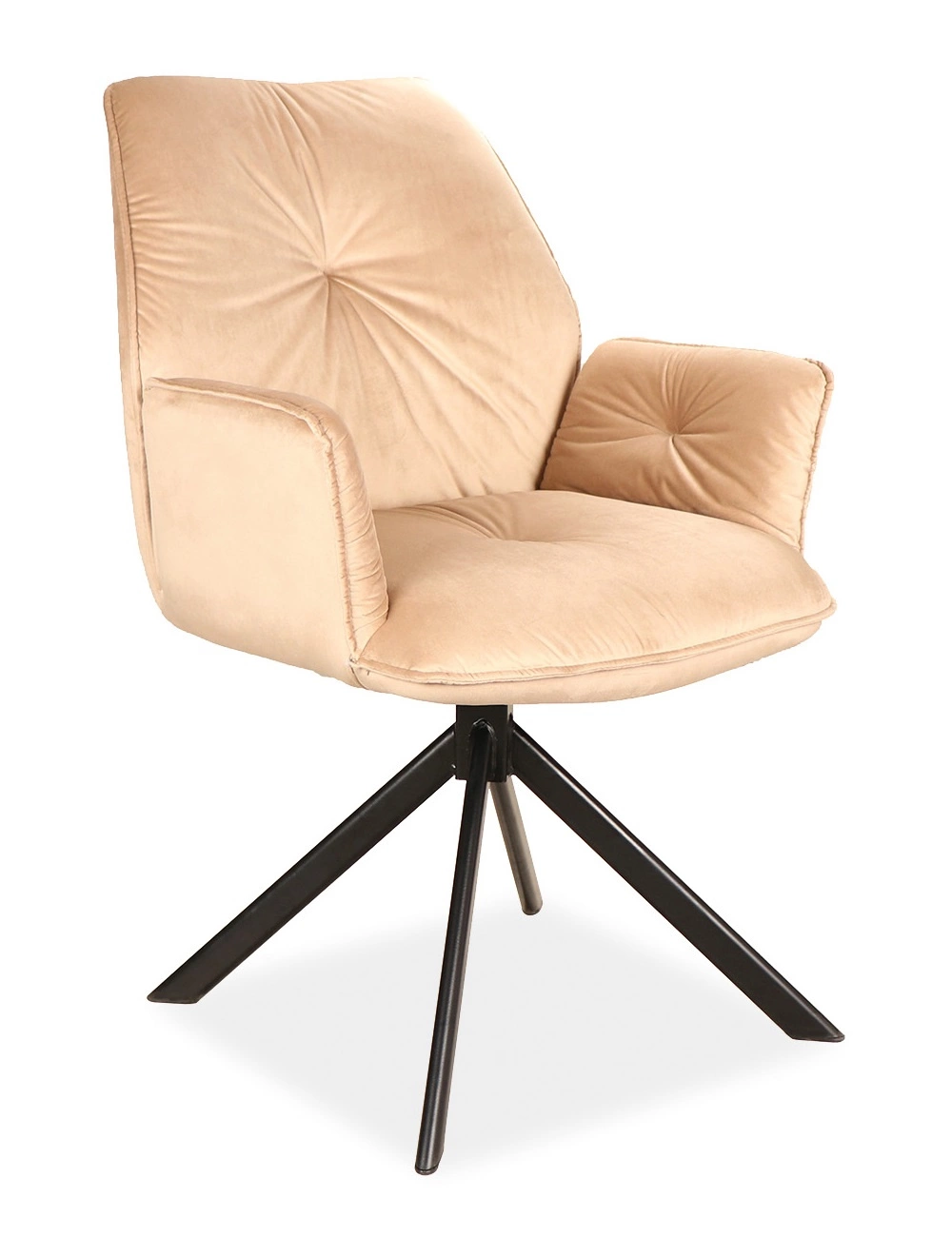 Dla zwiększenia komfortu krzesło posiada wysokie oparcie oraz miękkie podłokietniki, które zapewnią wygodę podczas siedzenia. Delikatne pikowanie podkreślają niepowtarzalny charakter krzesła tapicerowanego. Dodatkowym atutem krzesła jest funkcja obrotu. Dzięki zastosowaniu systemu obrotowego 180 stopni z funkcją powrotu do pozycji wyjściowej krzesło jest wygodne w użytkowaniu.