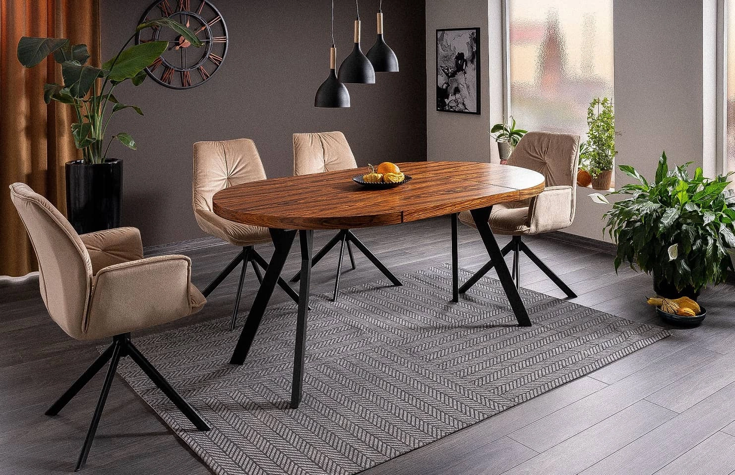 Idealnie wpasuje się w obecne trendy wnętrzarskie. Zestawienie kolorowej tkaniny z czarnymi nogami nadaje całości finezji i charakteru. Krzesło zostało pokryte tkaniną Bluvel, która jest bardzo miękka i przyjemna w dotyku. Tkaninę wyróżnia aksamitna, połyskująca w świetle powierzchnia. Zastosowana tkanina wykazuje wysoką odporność na zaciągnięcia i zadrapania. Dodatkowo jest trudnopalna. Dzięki właściwościom tkaniny krzesło obrotowe Boogie II przez długi czas zachowa swój nieskazitelny wygląd. Świetnie sprawdzi się jako krzesło do salonu, a także krzesło do jadalni.