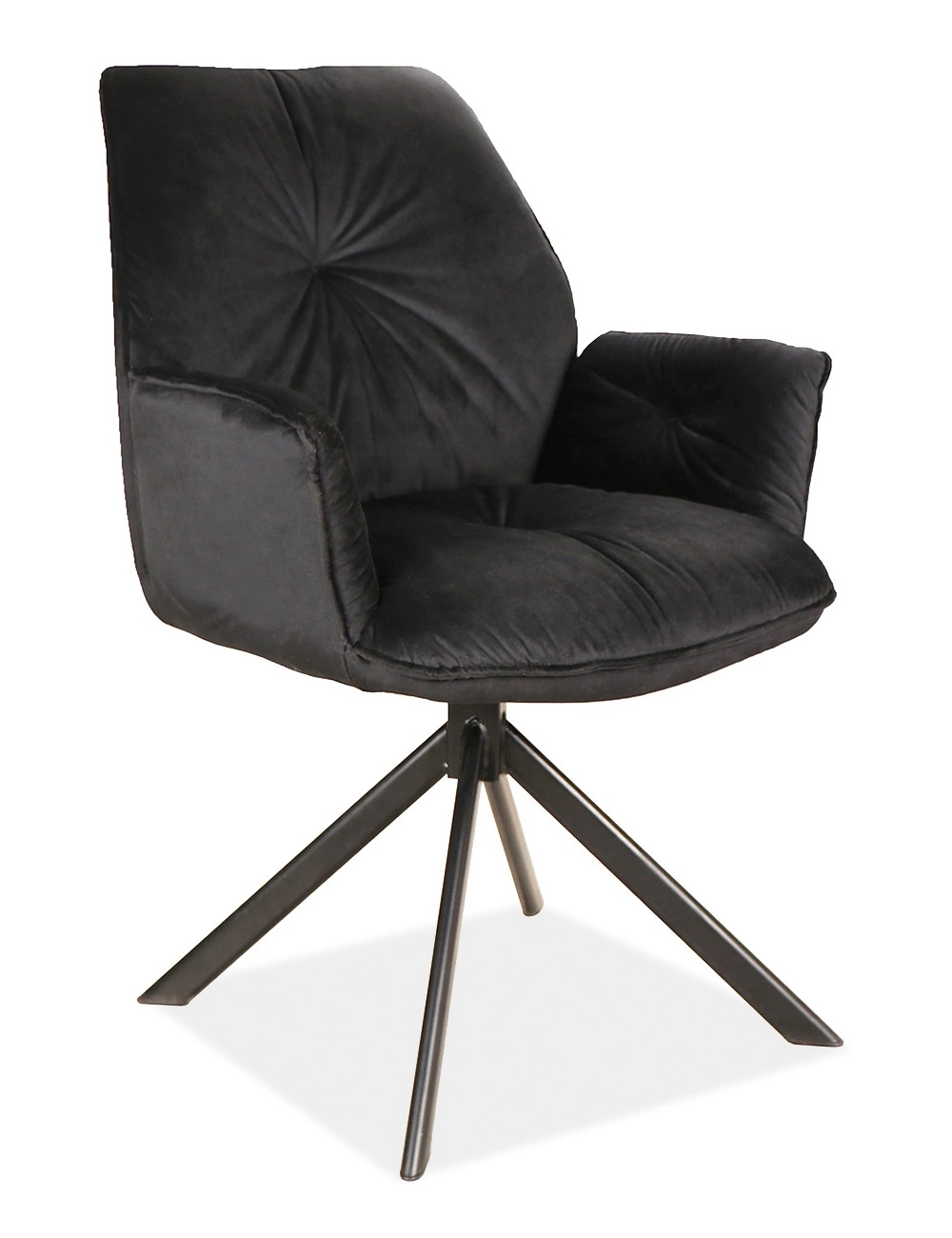 Dla zwiększenia komfortu krzesło posiada wysokie oparcie oraz miękkie podłokietniki, które zapewnią wygodę podczas siedzenia. Delikatne pikowanie podkreślają niepowtarzalny charakter krzesła tapicerowanego. Dodatkowym atutem krzesła jest funkcja obrotu. Dzięki zastosowaniu systemu obrotowego 180 stopni z funkcją powrotu do pozycji wyjściowej krzesło jest wygodne w użytkowaniu.