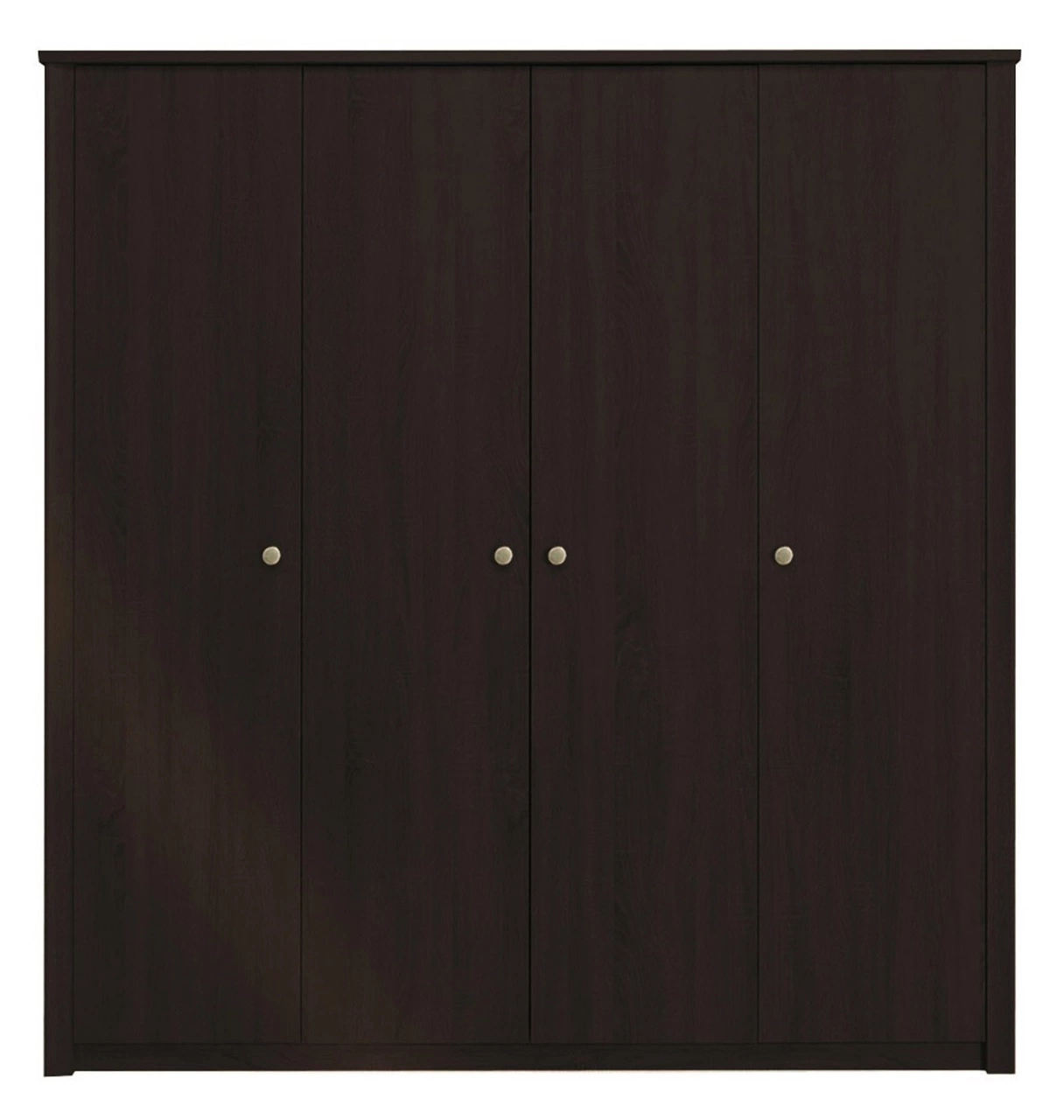 Szafa skonstruowana jest z 4 drzwi uchylnych o wykończeniu matowym. Dopełnieniem drzwi szafy są uchwyty metalowe w kolorze złotym. Szafa wykonana została z wysokiej jakości płyty laminowanej, która charakteryzuje się dużą odpornością na wpływ czynników zewnętrznych takich jak obicia, uderzenia i niefortunne zadrapania.