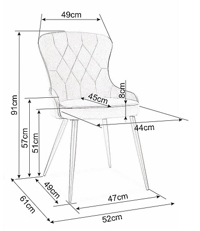 Dla zwiększenia komfortu krzesło posiada wygodne oparcie o wysokości 40 cm, które zapewni wygodę podczas siedzenia. Subtelne przeszycia oparcia podkreślają elegancję krzesła. Miękkie podłokietniki dodają całości niepowtarzalnego charakteru.
