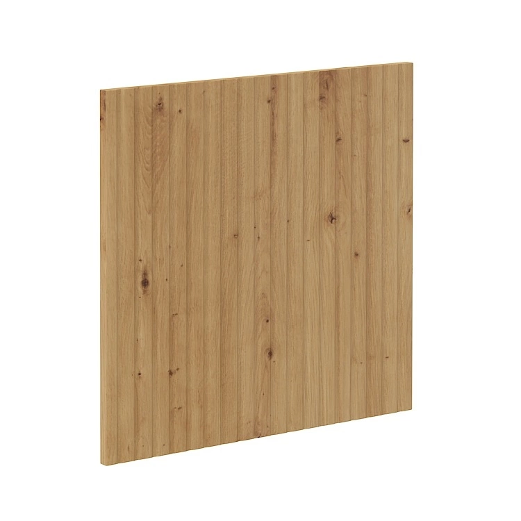 Front do zmywarki Antri w kolorze dąb artisan wykonany z płyty MDF został wykończony ozdobnym frezem.