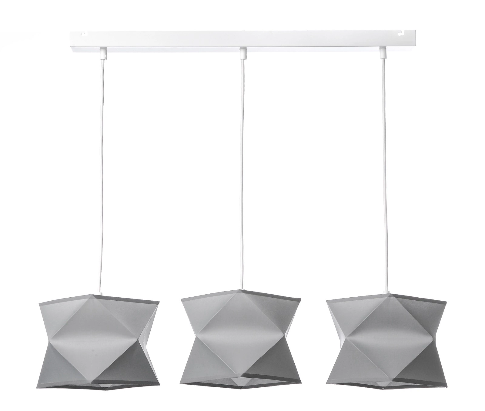 Lampy z kolekcji Quasar wyróżniają się nietypowym kształtem materiałowych kloszy. Trzy punkty świetlne z powodzeniem rozjaśnią każdą przestrzeń. Szare abażury w jasnym odcieniu zostały powieszone na białej podstawie. Dzięki stonowanej kolorystyce lampa wisząca sprawdzi się w pomieszczeniach w stylu nowoczesnym jak i klasycznym z wykorzystaniem odważnych elementów dekoracyjnych.
