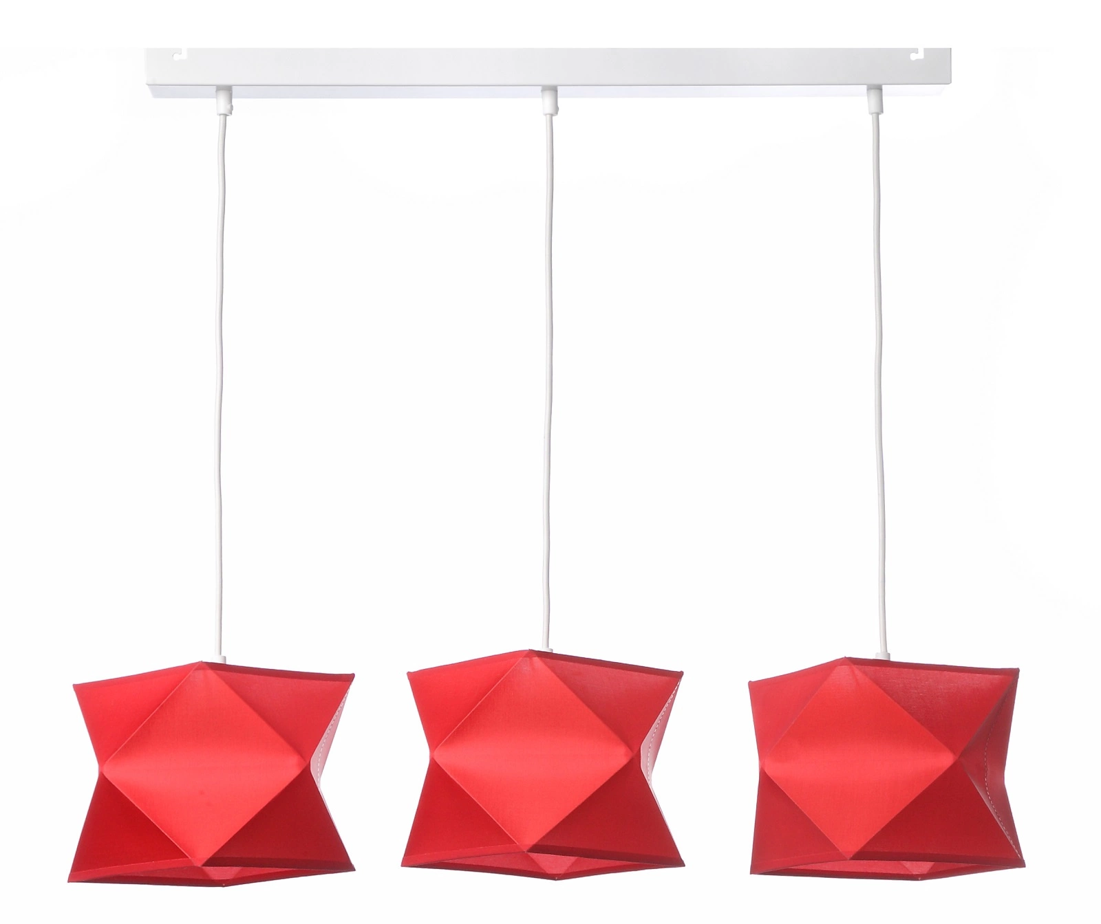 Lampy z kolekcji Quasar wyróżniają się nietypowym kształtem materiałowych kloszy. Trzy punkty świetlne z powodzeniem rozjaśnią każdą przestrzeń. Czerwone abażury zostały powieszone na białej podstawie. Dzięki wyrazistej kolorystyce lampa wisząca sprawdzi się w pomieszczeniach w stylu nowoczesnym jak i klasycznym z wykorzystaniem odważnych elementów dekoracyjnych.