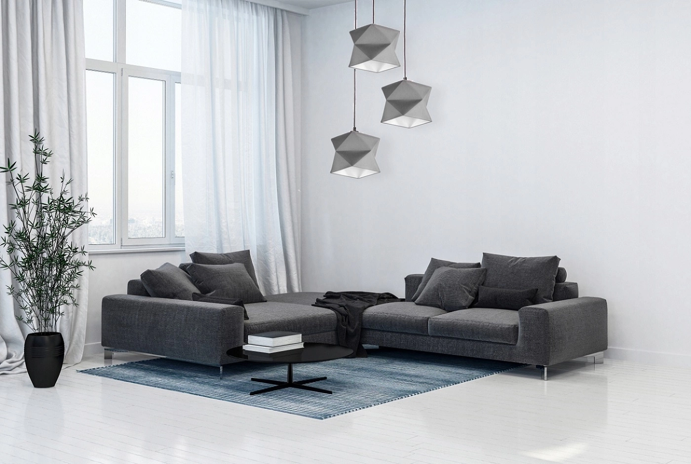 - Lampa wisząca potrójna Quasar to idealna propozycja oświetlenia dla miłośników wyrazistych wnętrz! Lampa sufitowa wyróżnia się charakterystycznym kształtem materiałowych kloszy. Wyrazista kolorystyka połączona z minimalizmem w nowoczesnym stylu.