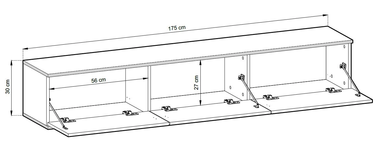Szafka RTV jest skonstruowana z 3 drzwi otwieranych do dołu.