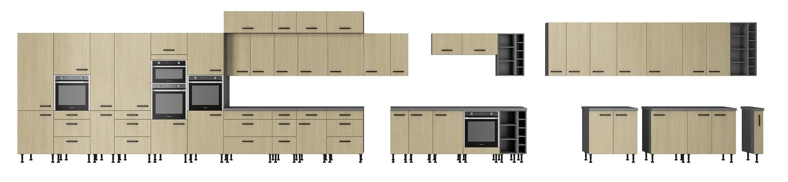 Szafka kuchenna wysoka jest dostarczana w elementach, które są zapakowane w pięciowarstwowy karton. Razem z elementami szafki kuchennej spakowane są wszystkie potrzebne do zmontowania okucia, tj. wkręty, śruby, kołki, zawiasy, szuflady, uchwyty, zaślepki.