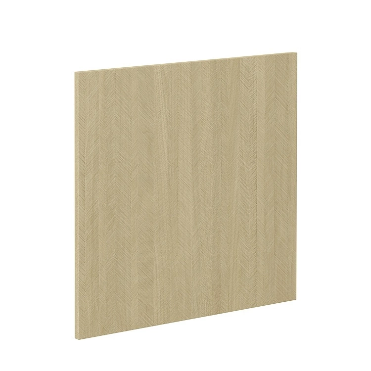 Front do zmywarki Chevron w kolorze beż jodełka wykonany z płyty laminowanej został wykończony ozdobnym wzorem jodełki.