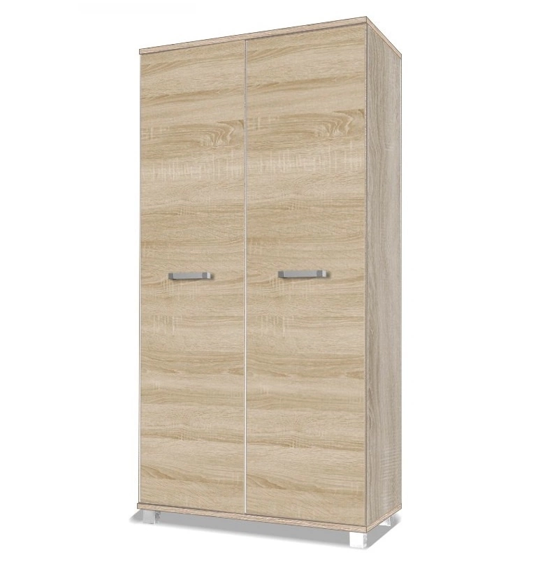 Szafa posiada 2 drzwi uchylne o wykończeniu matowym. Mebel wykonany został z wysokiej jakości płyty laminowanej o grubości 22mm oraz 16mm. Zastosowana płyta meblowa charakteryzuje się odpornością na wpływ czynników zewnętrznych takich jak obicia, uderzenia i niefortunne zadrapania.