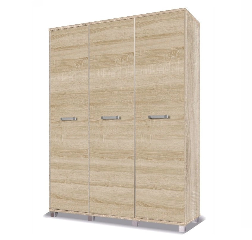 Szafa posiada 3 drzwi uchylne o wykończeniu matowym. Mebel wykonany został z wysokiej jakości płyty laminowanej o grubości 22mm oraz 16mm. Zastosowana płyta meblowa charakteryzuje się odpornością na wpływ czynników zewnętrznych takich jak obicia, uderzenia i niefortunne zadrapania.
