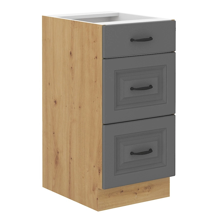 Szafka kuchenna z szufladami Kea w kolorze szary popiel / dąb artisan należy do kategorii mebli kuchennych modułowych, z których można utworzyć dowolne zestawy.