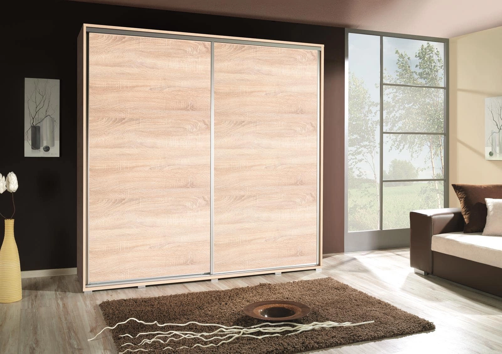 Szafa przesuwna Penelopa 205 cm dąb sonoma jasny nowoczesny design szafy aluminiowe prowadnice drzwi oraz system jezdny