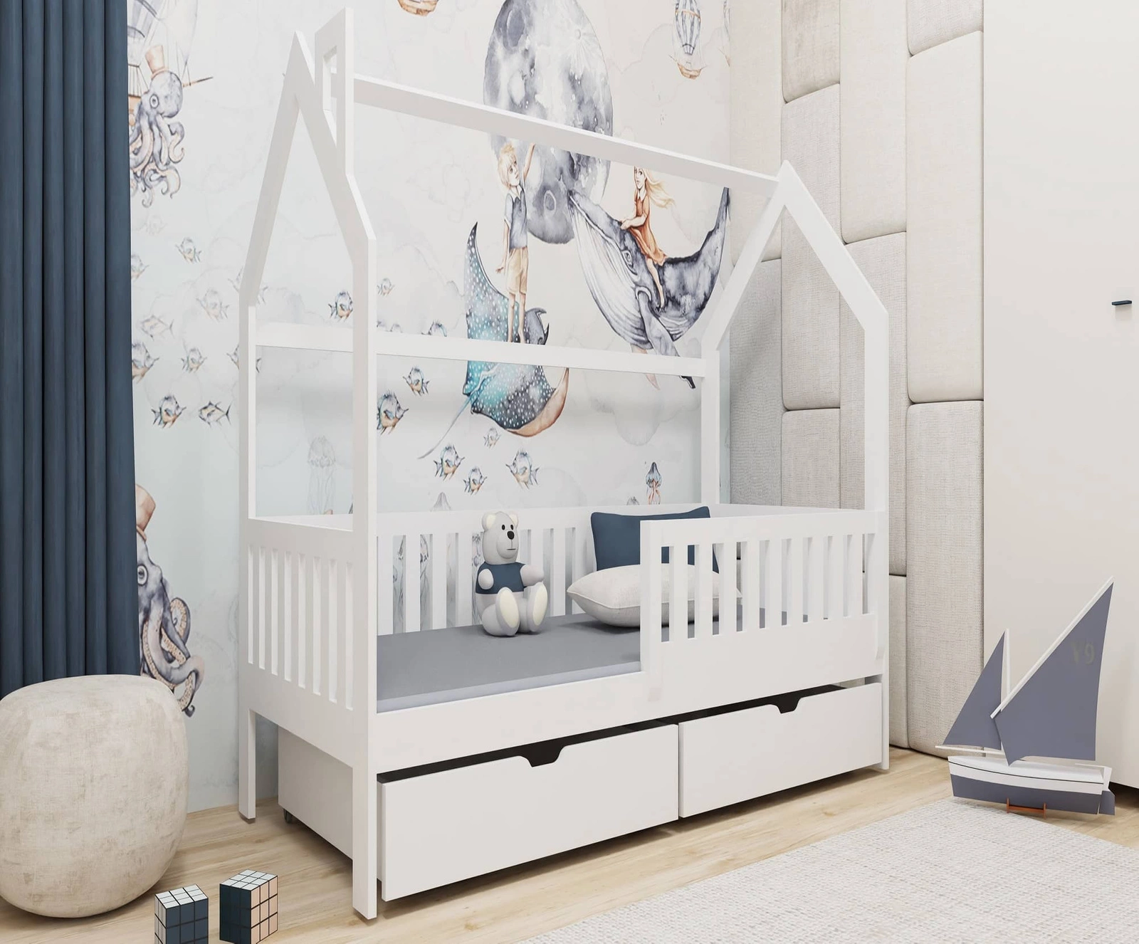 Łóżko dziecięce domek Timon 80x160 cm w kolorze białym idealnie wpasuje się do każdego stylu pokoju dziecięcego.