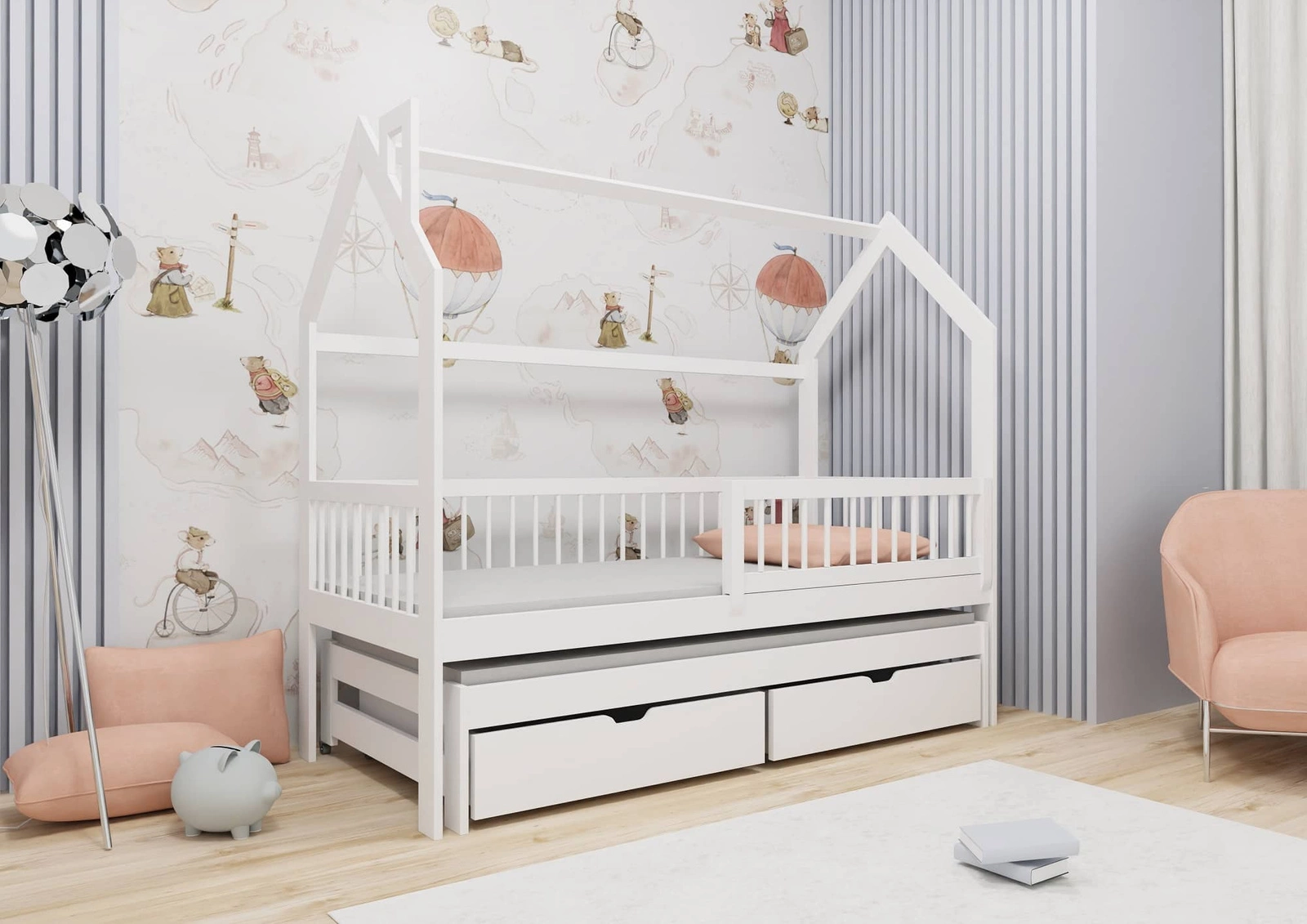 Dla większej funkcjonalności łóżka dziecięce domek są wyposażone w pojemne szuflady, które umożliwiają wygodne przechowywanie niezbędnych akcesoriów.