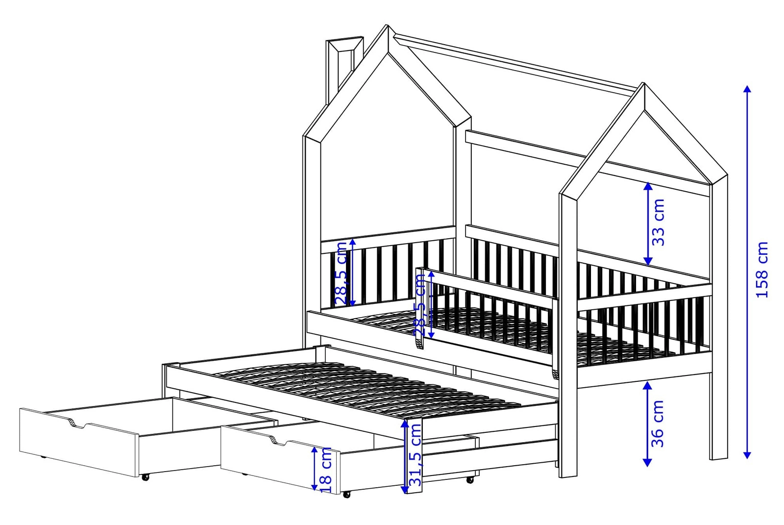 Dla większej funkcjonalności łóżka dziecięce domek są wyposażone w pojemne szuflady, które umożliwiają wygodne przechowywanie niezbędnych akcesoriów.