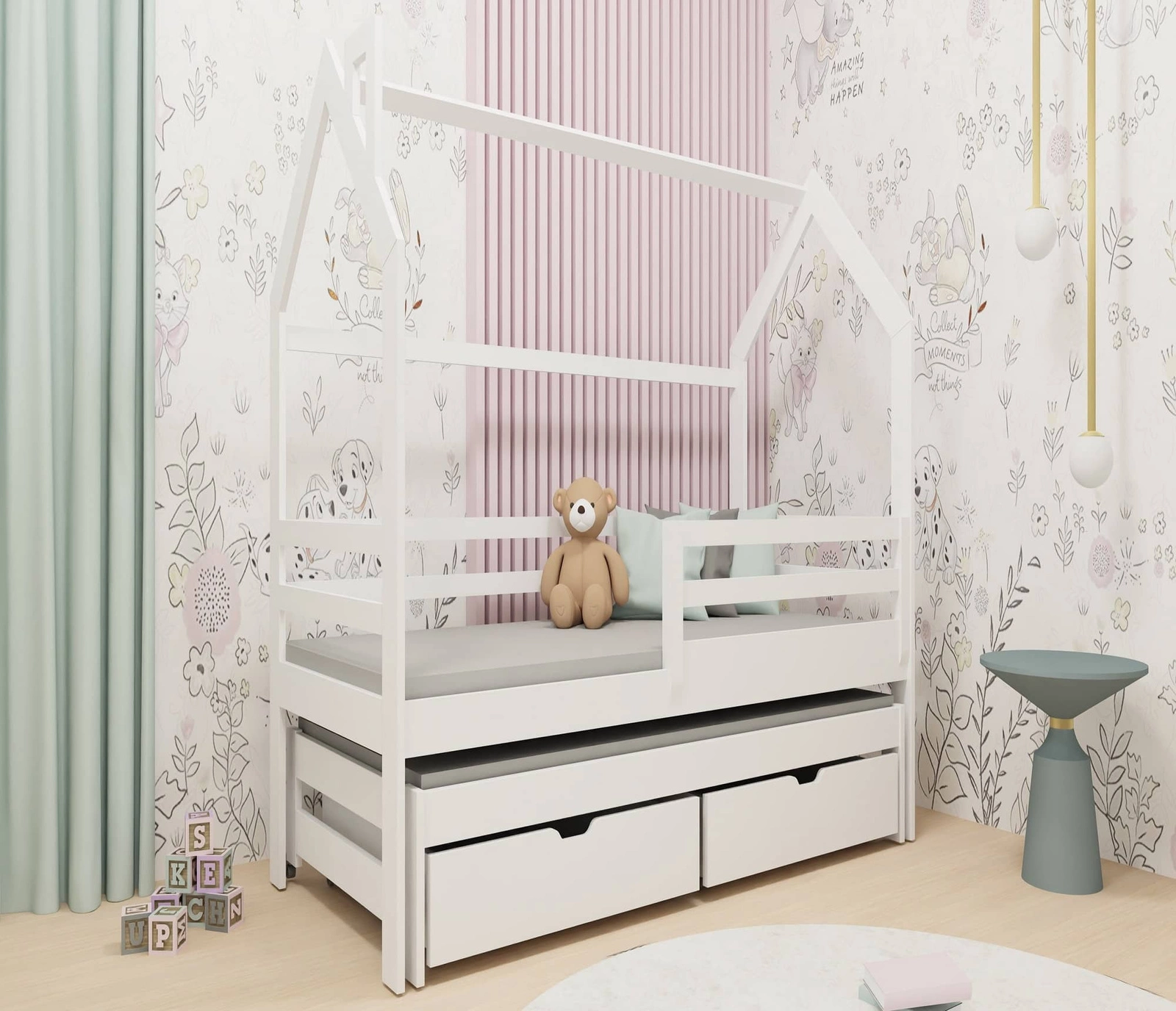 Łóżko dziecięce Chip 80x160 cm białe drewniane łóżko domek z pojemnymi szufladami łóżko 2 osobowe wysuwane do pokoju dziecka