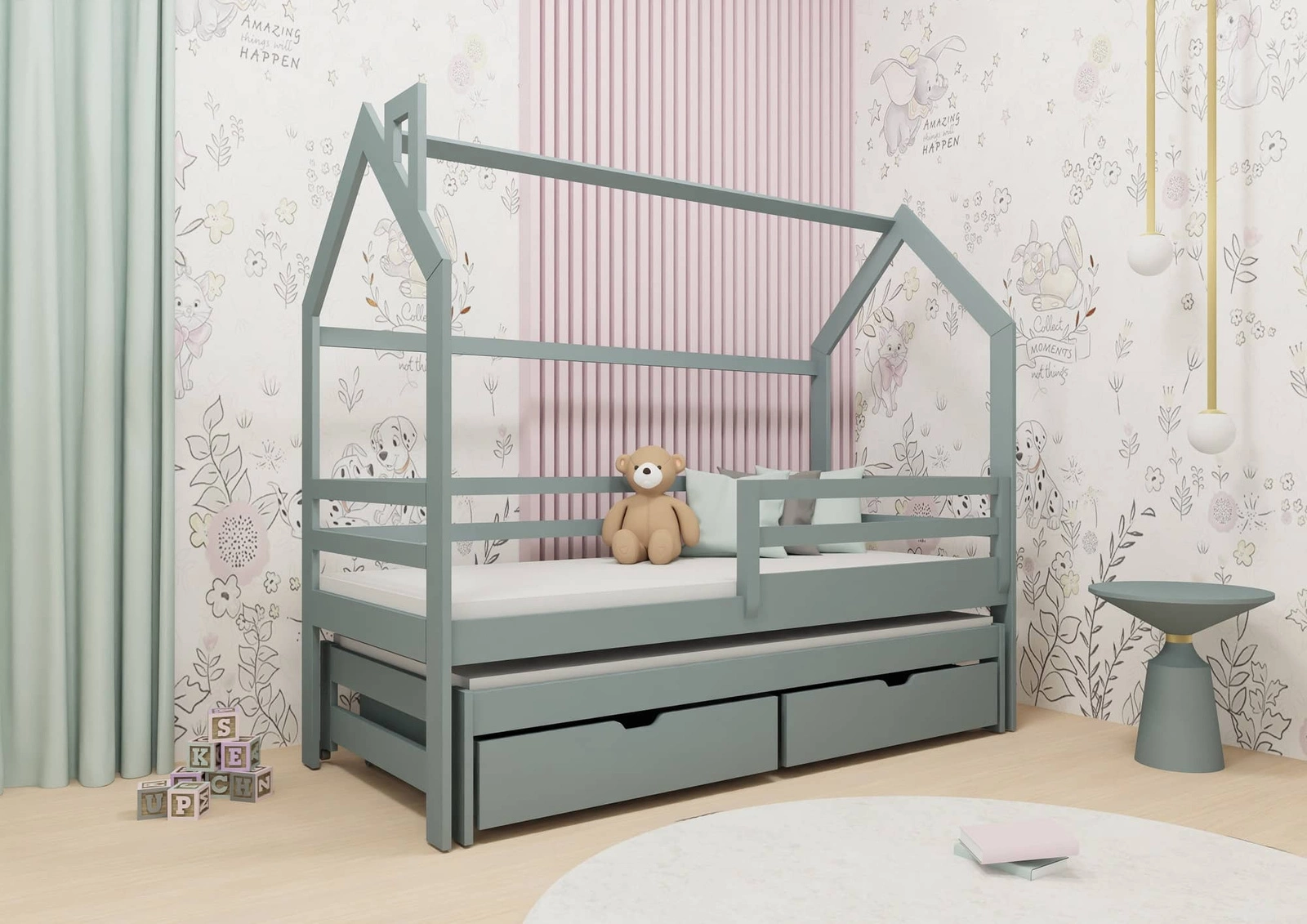 Łóżko dziecięce Chip 80x200 cm szare drewniane łóżko domek z pojemnymi szufladami łóżko 2 osobowe wysuwane do pokoju dziecka