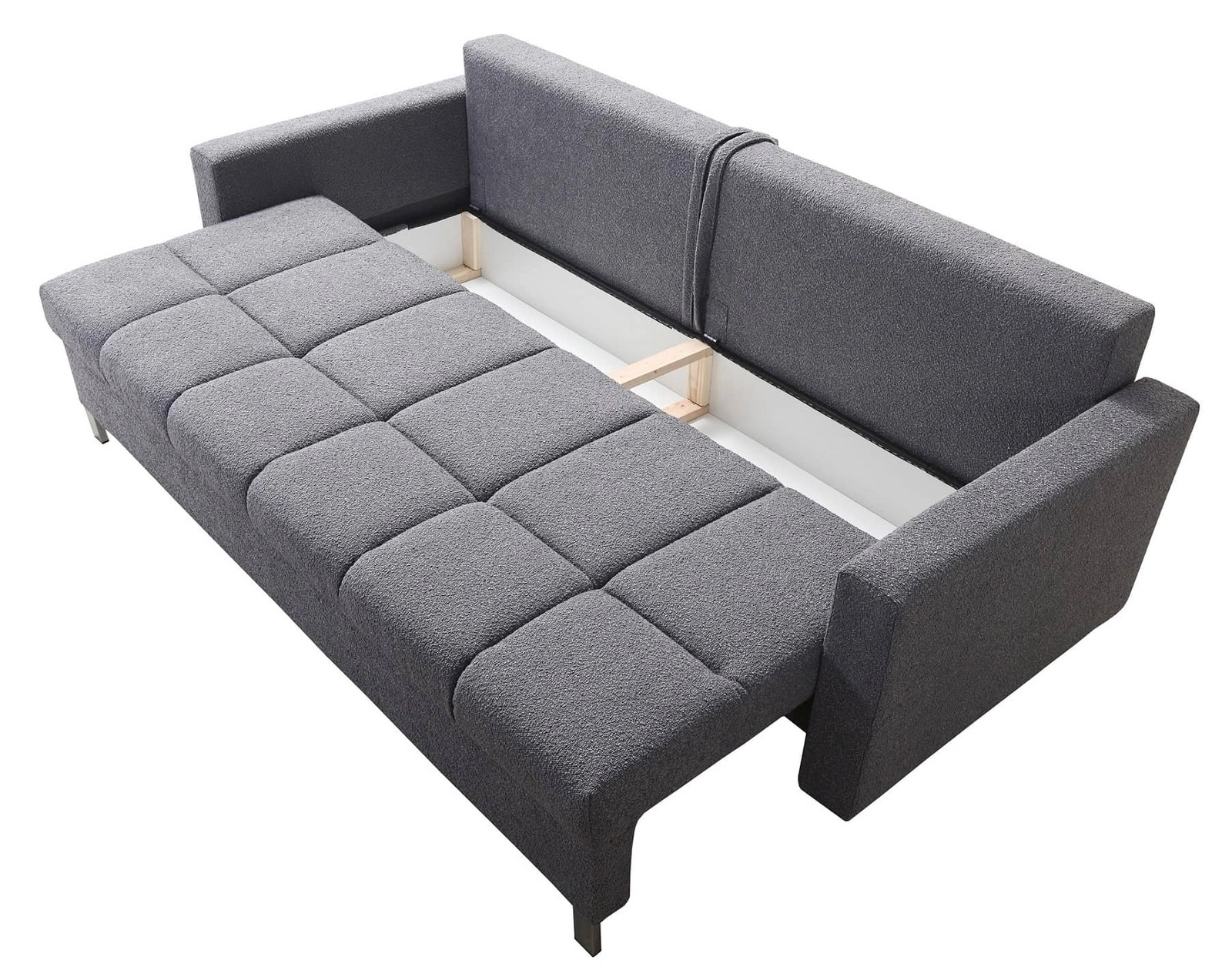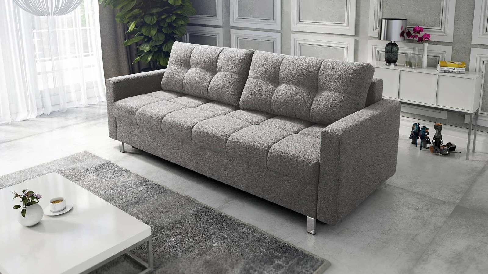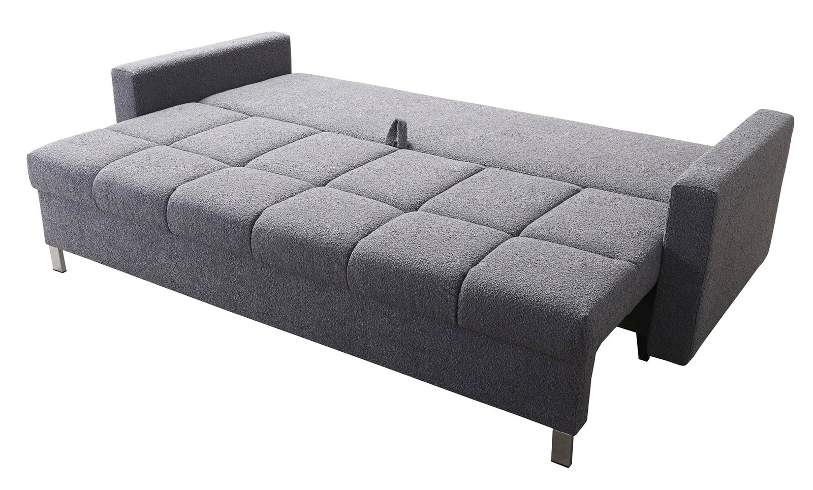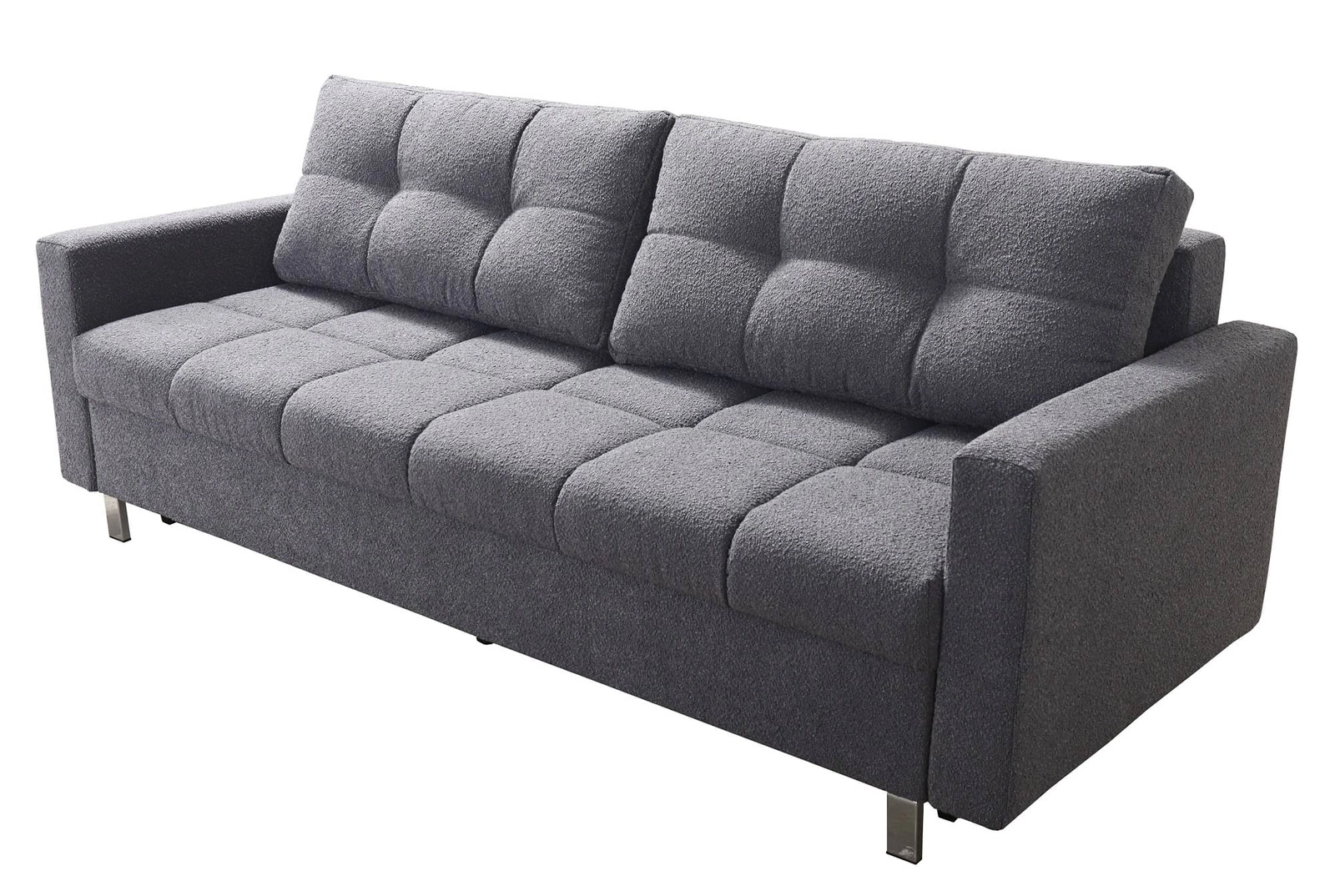 Sofa z funkcją spania Bilbao szara nowoczesny design i szeroka funkcjonalność tkanina o charakterystycznej pętelkowej powierzchni