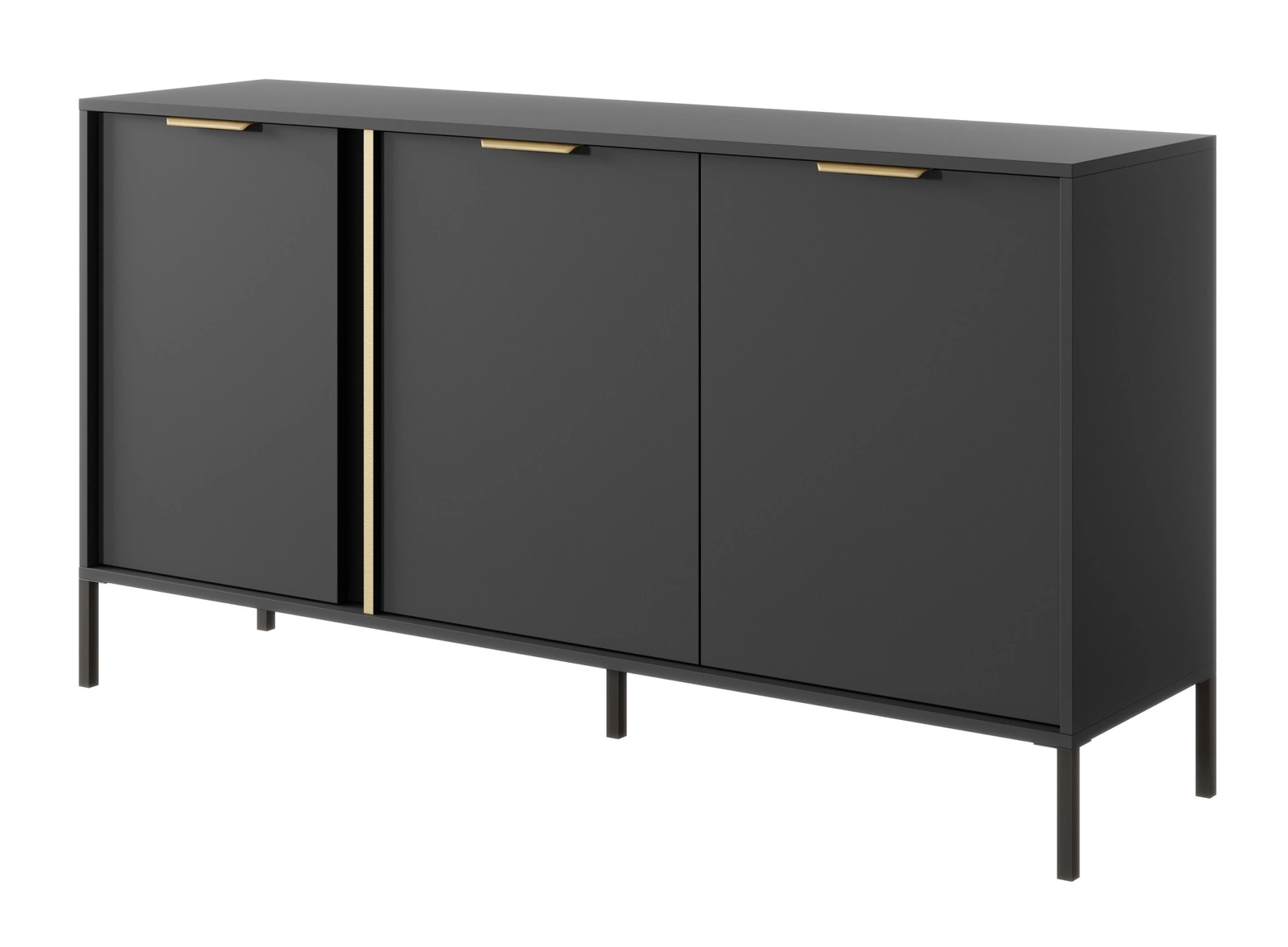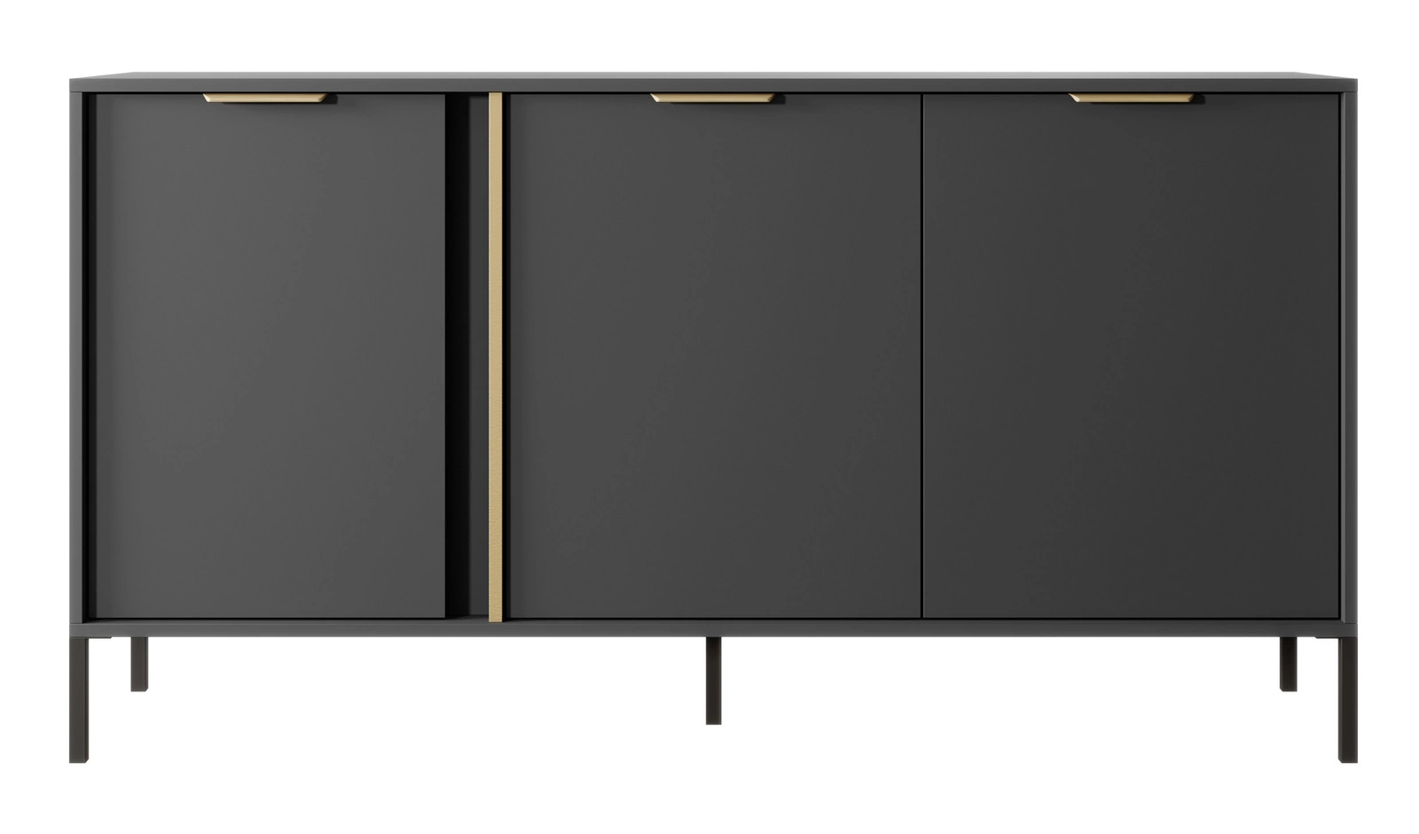 Komoda jest skonstruowana z 3 drzwi. Komoda gwarantuje komfortowe i bezproblemowe korzystanie oraz trwałość całego mebla przez wiele lat użytkowania. Modny antracyt świetnie łączy się z innymi kolorami, dzięki czemu komoda Golden świetnie sprawdzi się jako komoda do salonu, komoda do sypialni, komoda do pokoju dziennego, a także jako mebel biurowy.
