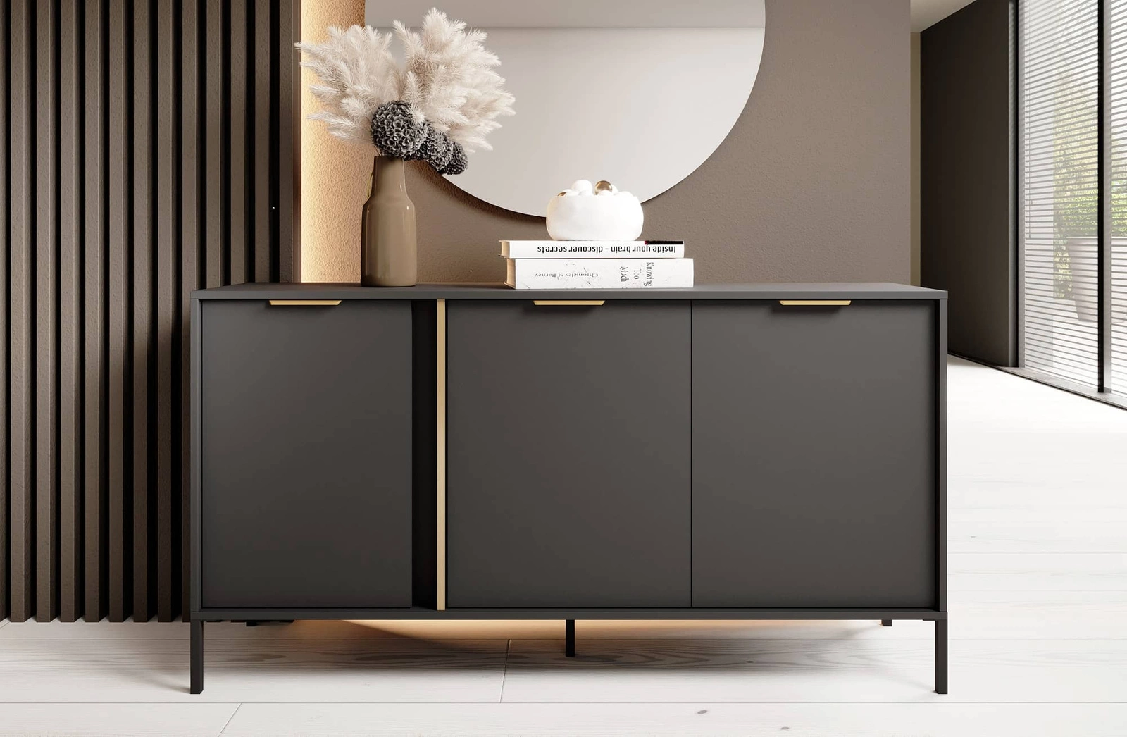 Komoda 153 cm Golden w kolorze antracytu to stylowy mebel, który idealnie wkomponuje się do każdego salonu lub jadalni.