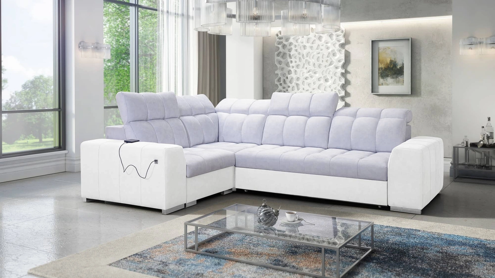 Szczegóły nowoczesnego narożnika z funkcją spania Luigi II