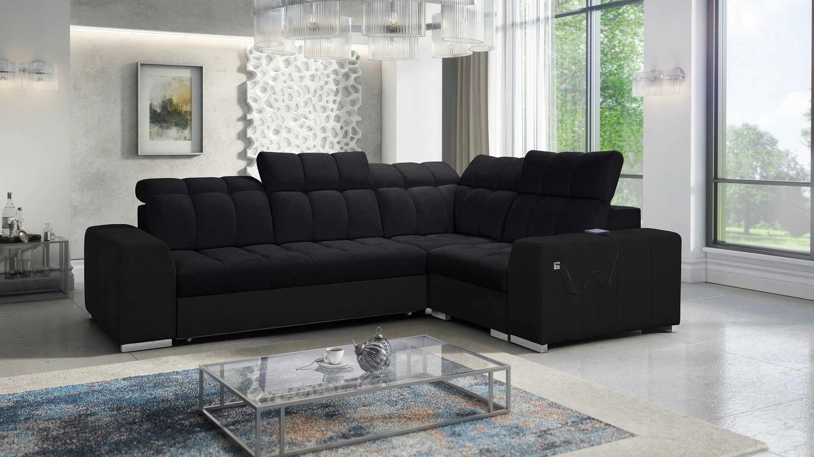 Narożnik Luigi II w kolorze czarnym z regulowanymi zagłówkami to zachwycający mebel z gwarancją najwyższego komfortu i funkcjonalności!