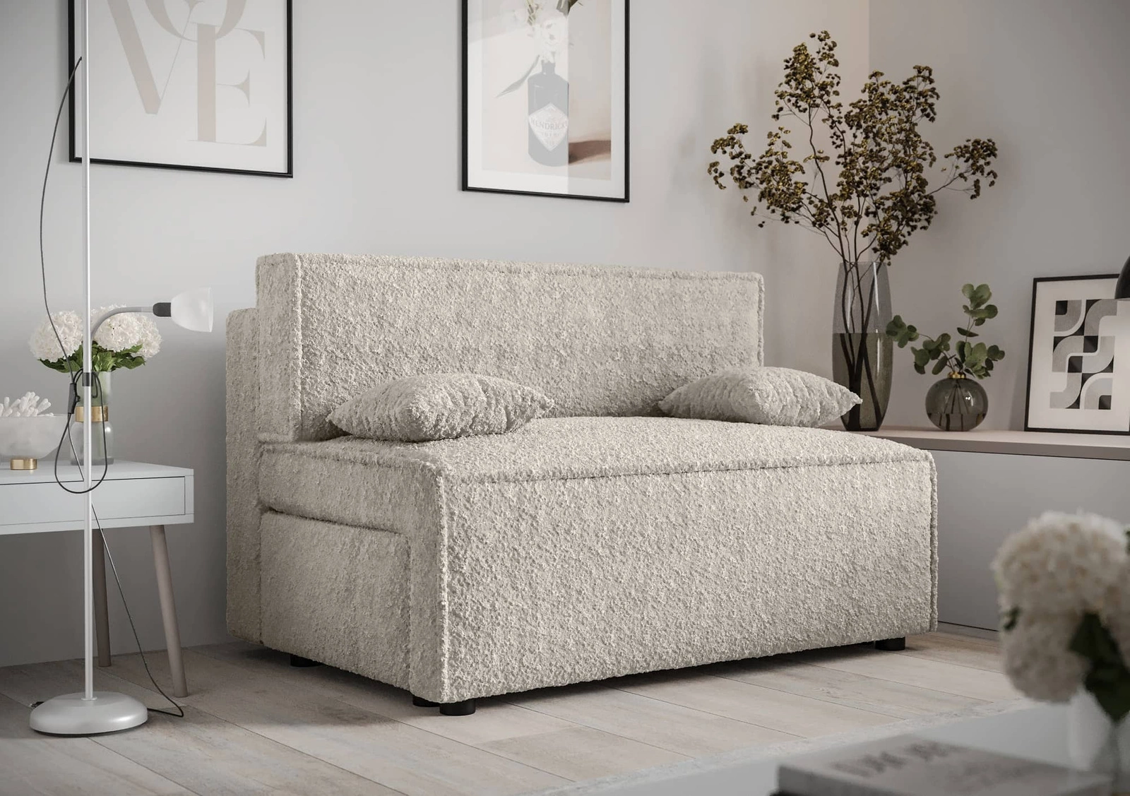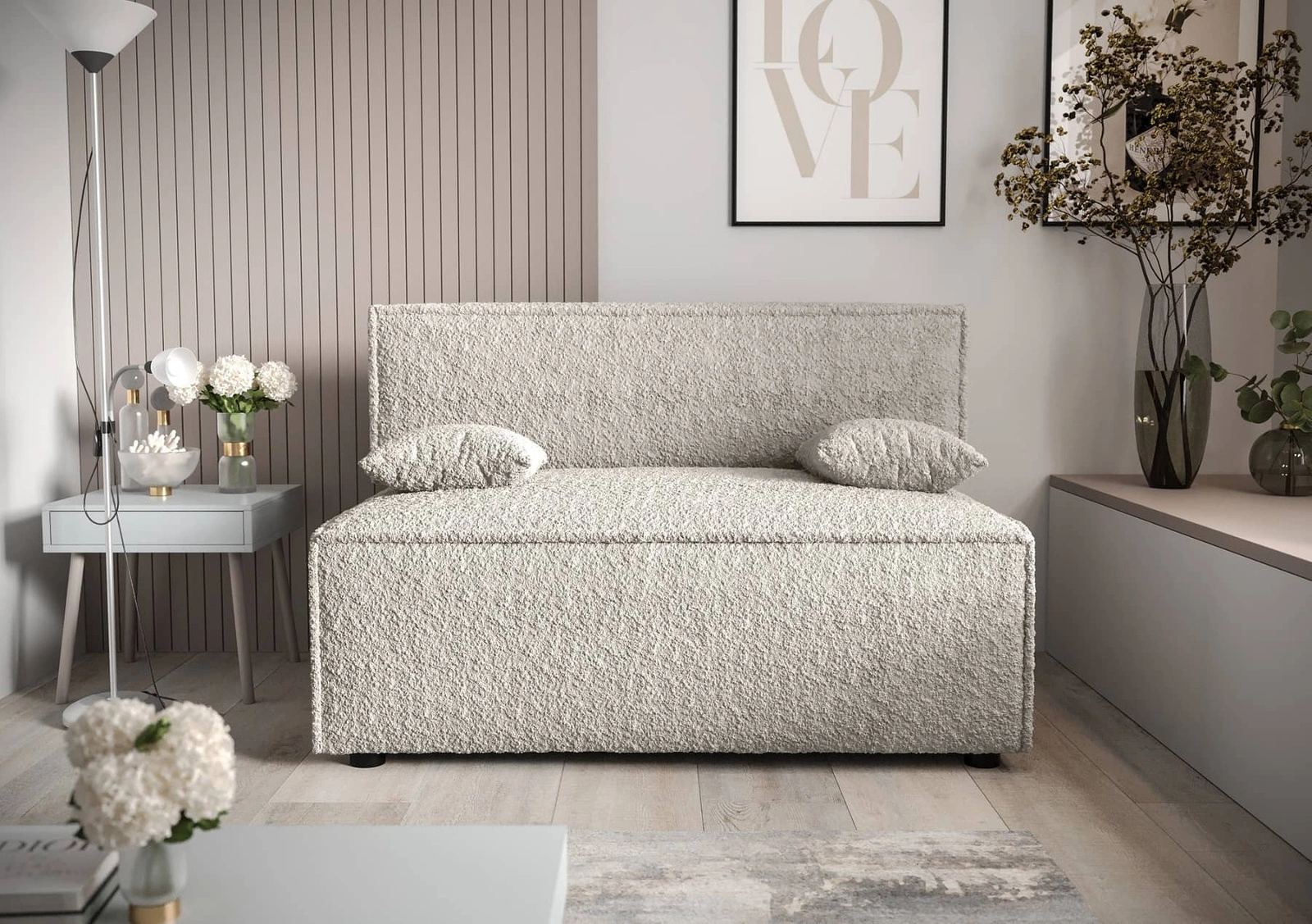 Kanapa wykonana z miękkiej i miłej w dotyku tkaniny o strukturalnej powierzchni Anthology 1 gwarantuje najwyższy komfort i funkcjonalność. Przez swoje niewielkie wymiary kanapa rozkładana sprawdzi się w mniejszych mieszkaniach gdzie oszczędność miejsca jest głównym priorytetem. Cechy tkaniny to hydrofobowość, co gwarantuje ograniczone wchłanianie cieczy. Tkanina jest również trudnopalna, a także jest łatwa do utrzymania w czystości. Dzięki temu kanapa przez długi czas będzie wyglądała estetycznie. Dodatkowym atutem tkaniny Anthology jest pętelkowa powierzchnia, która nadaje kanapie wyjątkowej urody. Charakterystyczną cechą tej tkaniny są liczne pętelki oraz supełki na powierzchni tkaniny, które posiadają nieregularny kształt oraz wielkość.