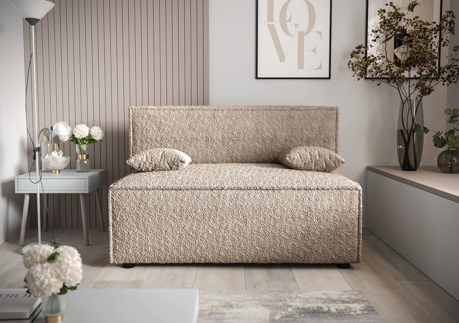 Kanapa wykonana z miękkiej i miłej w dotyku tkaniny o strukturalnej powierzchni Anthology 4 gwarantuje najwyższy komfort i funkcjonalność. Przez swoje niewielkie wymiary kanapa rozkładana sprawdzi się w mniejszych mieszkaniach gdzie oszczędność miejsca jest głównym priorytetem. Cechy tkaniny to hydrofobowość, co gwarantuje ograniczone wchłanianie cieczy. Tkanina jest również trudnopalna, a także jest łatwa do utrzymania w czystości. Dzięki temu kanapa przez długi czas będzie wyglądała estetycznie. Dodatkowym atutem tkaniny Anthology jest pętelkowa powierzchnia, która nadaje kanapie wyjątkowej urody. Charakterystyczną cechą tej tkaniny są liczne pętelki oraz supełki na powierzchni tkaniny, które posiadają nieregularny kształt oraz wielkość.