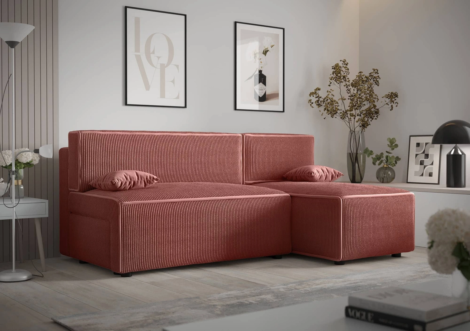 Szczegóły nowoczesnego narożnika z funkcją spania Brandon