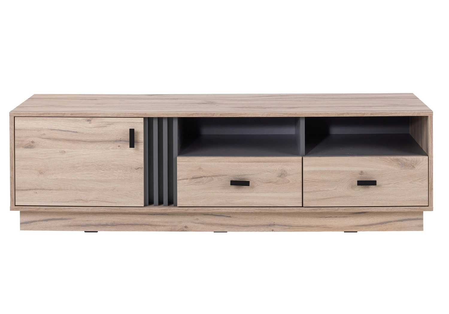 Zestaw mebli Estan w kolorze dąb estana jasny / antracyt to stylowe rozwiązanie, które idealnie wkomponuje się do każdego salonu lub pokoju dziennego.