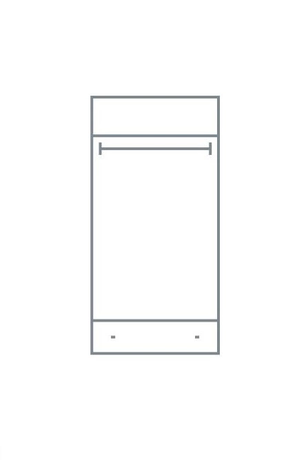 Mebel jest skonstruowany z 2 drzwi oraz 1 szuflady. Szafa na ubrania dzieli się na część z drążkiem i część z półką. Dopełnieniem frontów szafy są metalowe uchwyty w kolorze czarnym. Konstrukcję mebla urozmaicono designerskimi metalowymi nogami w kolorze czarnym.