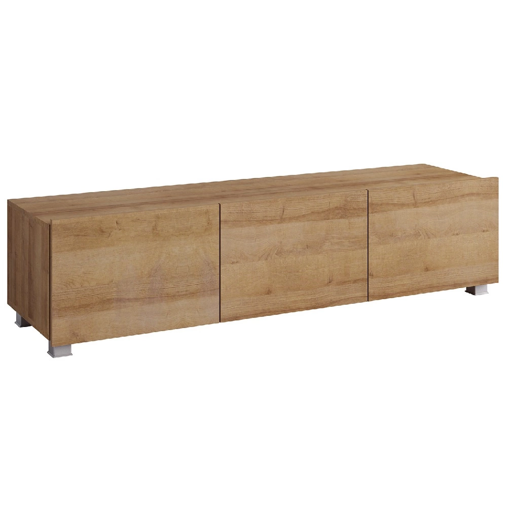 Przeszklone fronty witryn pozwolą wyeksponować dodatki stanowiące dekorację salonu. Pojemne szafki RTV pomieszczą wszystkie akcesoria oraz sprzęty. Subtelnie wysunięte ponad linię blatu fronty pełnią także funkcję uchwytu. Dodatkowym atutem szafki RTV jest możliwość wybrania sposobu ustawienia. Szafka RTV może stać na podłodze. Dzięki znajdującym się w zestawie zawieszkom bardzo szybko szafka RTV może stać się meblem wiszącym.