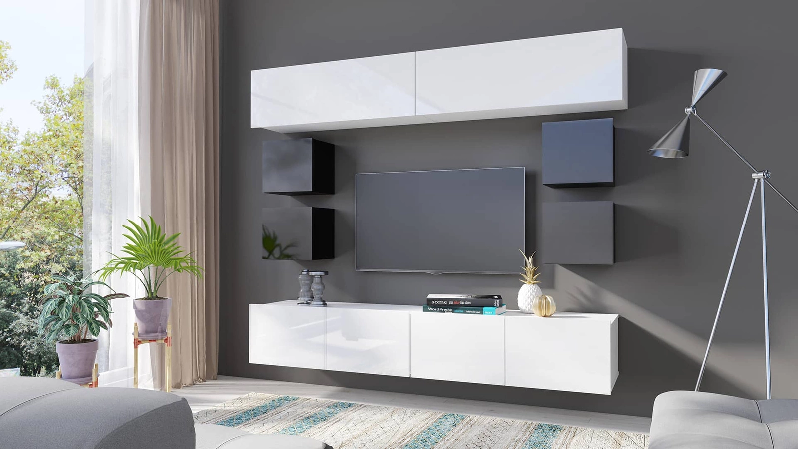 Meblościanka Apulia w kolorze biały / czarny to nowoczesny design mebla, który stanie się stylowym wykończeniem wnętrza.