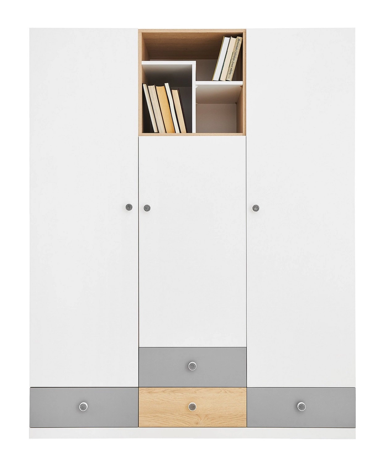 Szafa Pixel w kolorze dąb biszkoptowy / biały / szary to przepis na nowoczesne oraz funkcjonalne wnętrze w pokoju młodzieżowym.