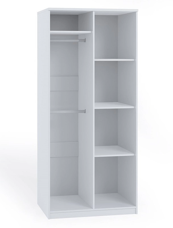 Szafa Rico dzieli się na część z dwoma drążkami i część z półkami. Szafa wykonana została z wysokiej jakości płyty laminowanej, która charakteryzuje się odpornością na wpływ czynników zewnętrznych takich jak obicia, uderzenia i niefortunne zadrapania. Stylowym wykończeniem drzwi szafy są srebrne uchwyty, które poza swoją podstawową funkcją, nadają niezwykle gustownego wyglądu.
