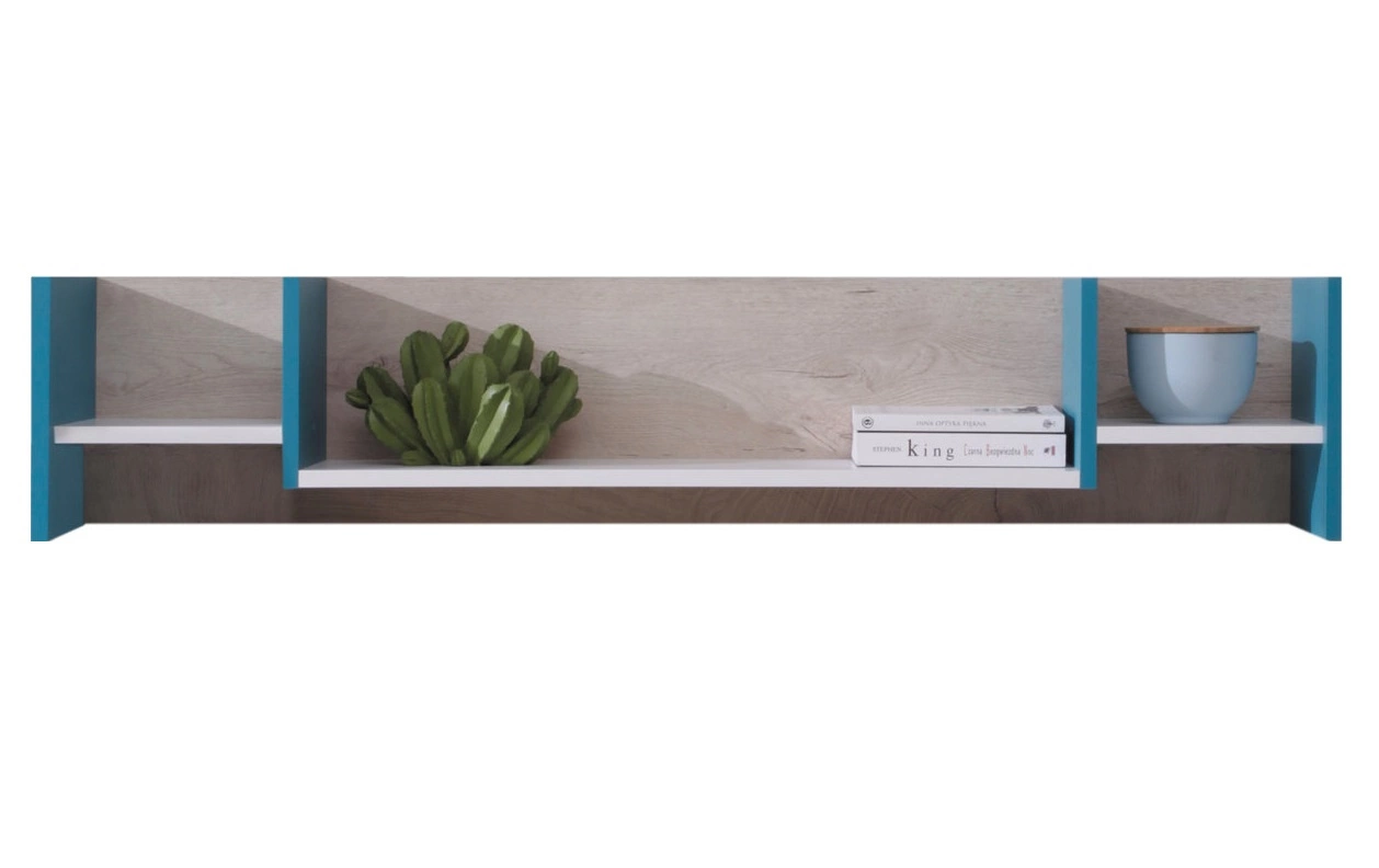 Zestaw mebli Niko biały / dąb / morski idealna propozycja do pokoju młodzieżowego lub dziecięcego w modnym stylu