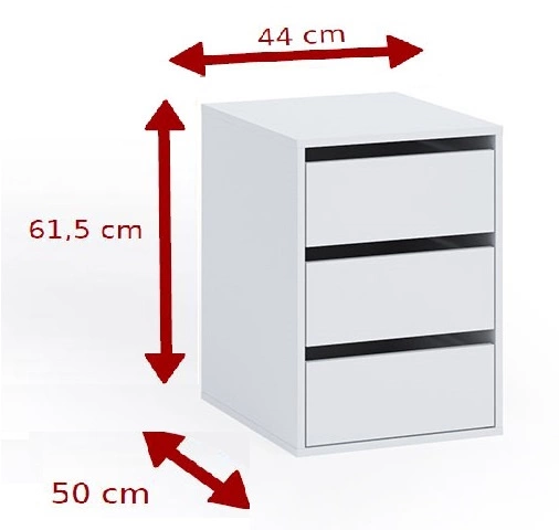 - Kontenerek z szufladami to świetny dodatek do szafy przesuwnej lub szafy na ubrania. Trzy szuflady zagwarantują dodatkowe miejsce na ubrania, bieliznę czy obuwie. Wykonany został z wysokiej jakości płyty laminowanej.