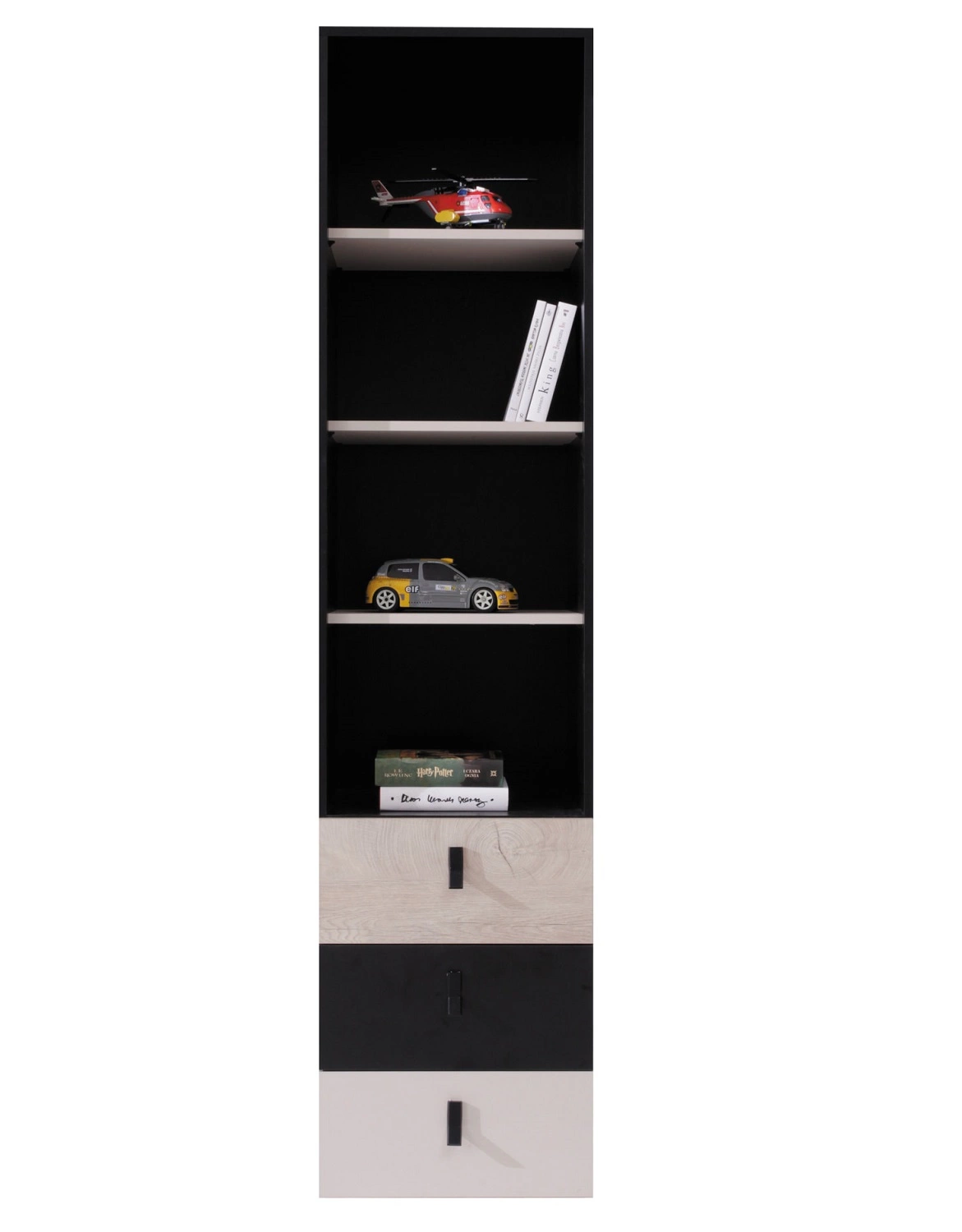 Zestaw mebli Niko w kolorze czarny / dąb / beż to stylowe rozwiązanie, które idealnie wkomponuje się do każdego pokoju nastolatka lub pokoju dziecięcego.