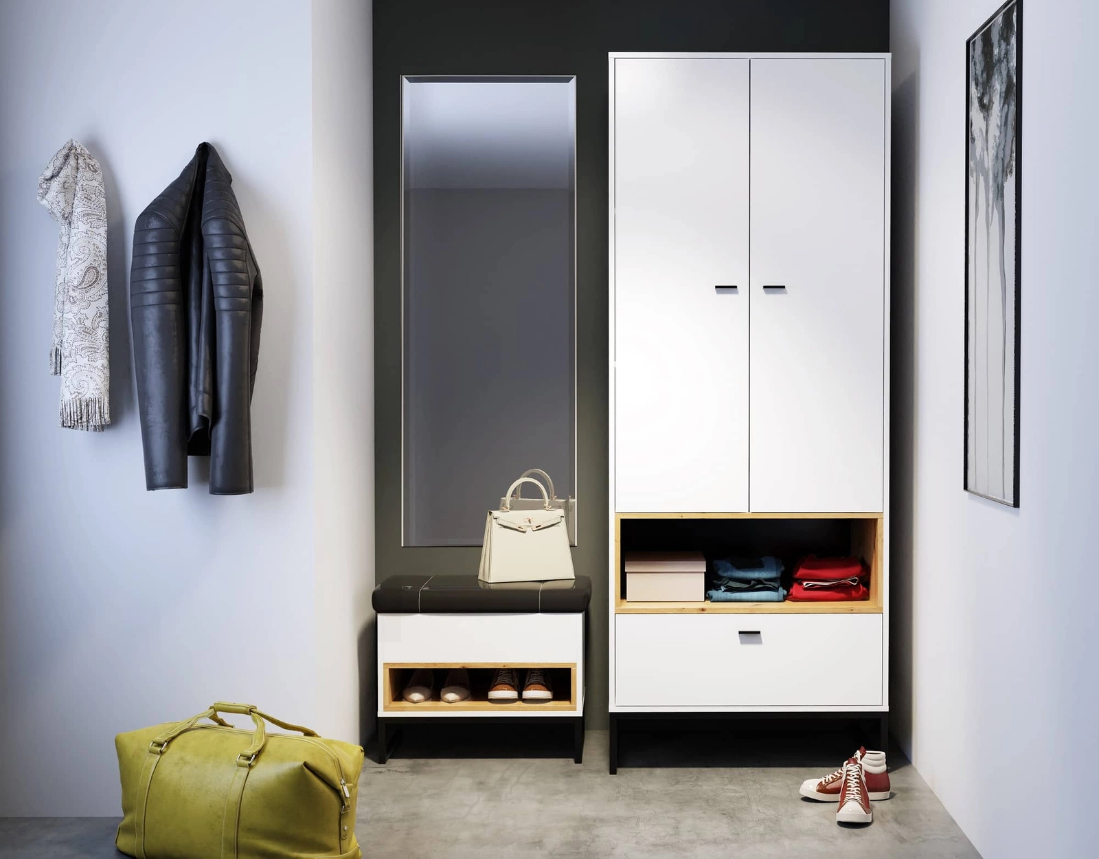 Loftowy styl idealnie koresponduje z aktualnymi trendami wnętrzarskimi dzięki czemu meble z kolekcji Olier łatwo zaaranżować w garderobie, sypialni lub w przedpokoju. Panel z lustrem jest przystosowany do zawieszenia na ścianie oraz gwarantuje komfortowe i bezproblemowe korzystanie oraz trwałość przez wiele lat użytkowania.