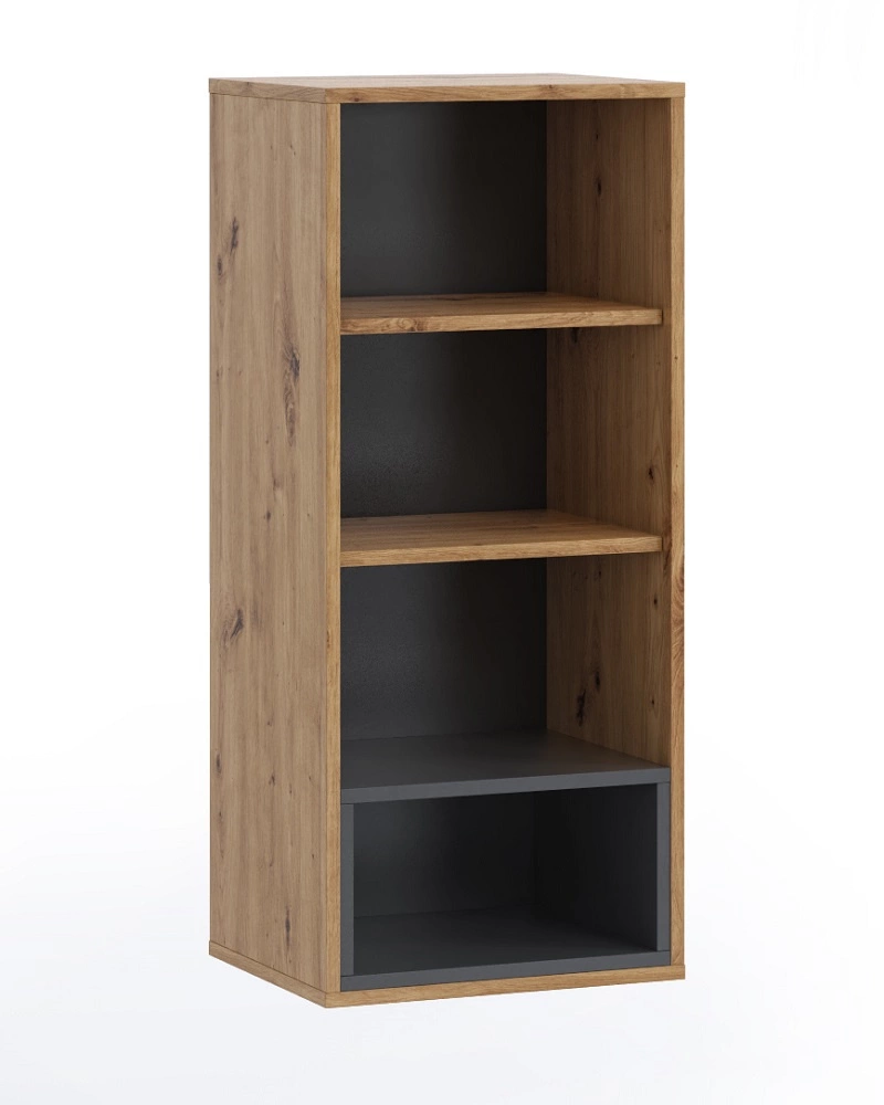 Witryna Olier powstała z myślą o modnych i nowoczesnych wnętrzach. Prosta bryła w kolorze białym z kontrastującymi wstawkami w kolorze dąb artisan nadaje designerski, loftowy charakter. Minimalistyczny uchwyt to element, który przyciągają wzrok i sprawia, że całość prezentuje się bardzo gustownie. Witryna wisząca jest świetną alternatywą dla wiszących regałów.