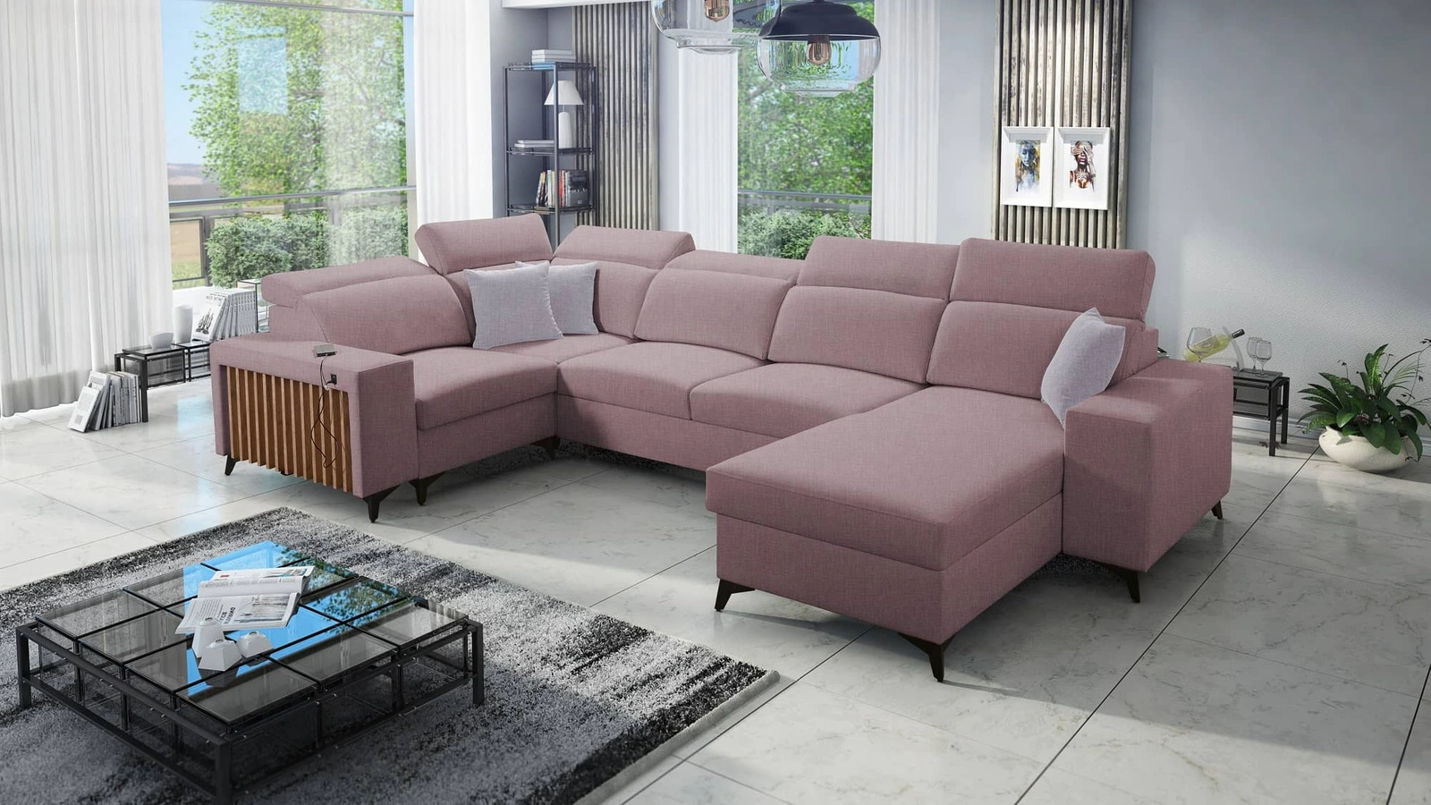Narożnik Kelly IV w kolorze lawendowy róż z regulowanymi zagłówkami to ciekawie prezentujący się mebel z gwarancją najwyższego komfortu i funkcjonalności.