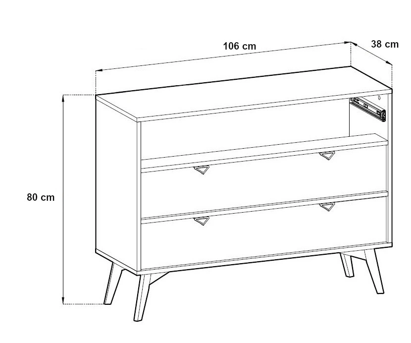Komoda jest skonstruowana z 3 szuflad z system pełnego wysuwu. Zastosowany system zwiększa komfort użytkowania mebli. Nowoczesna komoda do salonu gwarantuje komfortowe i bezproblemowe korzystanie oraz trwałość całego mebla przez wiele lat użytkowania.