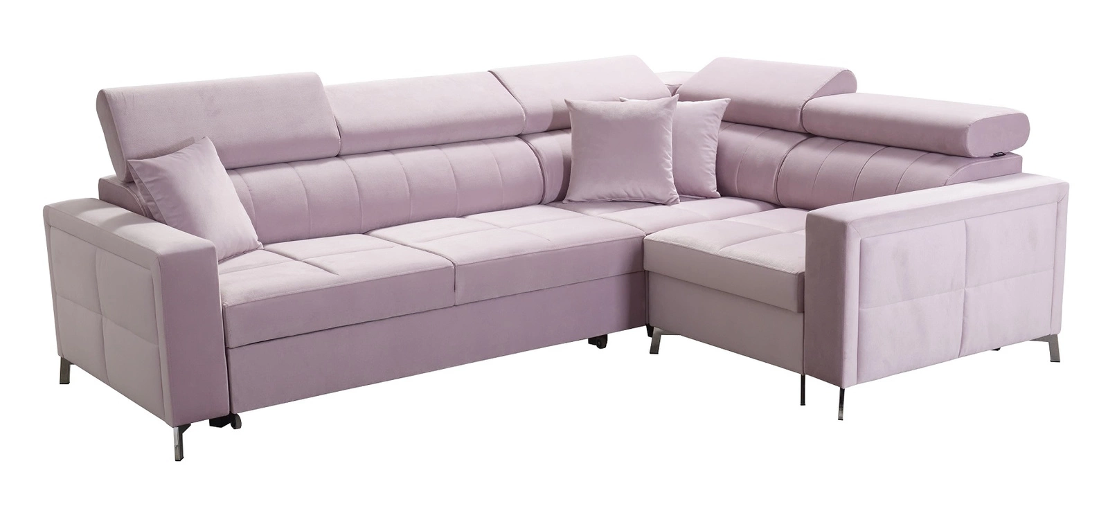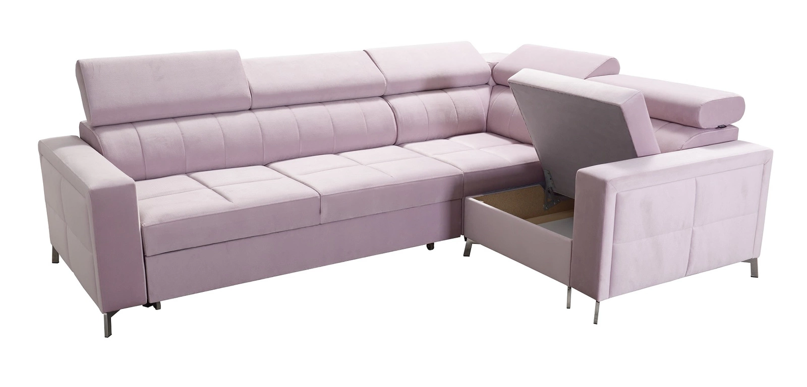 Sposób rozkładania narożnika to automat typu Delfin, który charakteryzuje się długą żywotnością. Rozłożenie pełnej powierzchni spania można wykonać jednym pociągnięciem. Mebel wyposażony został w chromowane, metalowe nogi. Tył mebla dodatkowo został wzmocniony drewnianymi nogami. Ten modernistyczny narożnik wpasuje się do każdego typu pomieszczenia! Gwarantuje komfortowe i bezproblemowe korzystanie oraz trwałość całego mebla przez wiele lat użytkowania. Dzięki swoim optymalnym wymiarom oraz szerokiej funkcjonalności narożnik z funkcją spania świetnie sprawdzi się jako narożnik do pokoju dziennego lub jako narożnik rozkładany do pokoju nastolatka. Narożniki do salonu z kolekcji Nausa świetnie odnajdą się w każdym wnętrzu w Twoim ulubionym stylu!