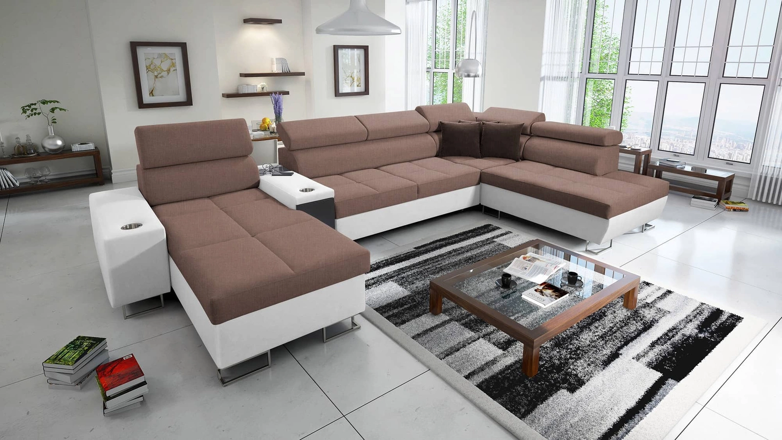Narożnik Dafni V w kolorze jasny brąz / biały z regulowanymi zagłówkami to ciekawie prezentujący się mebel z gwarancją najwyższego komfortu i funkcjonalności.